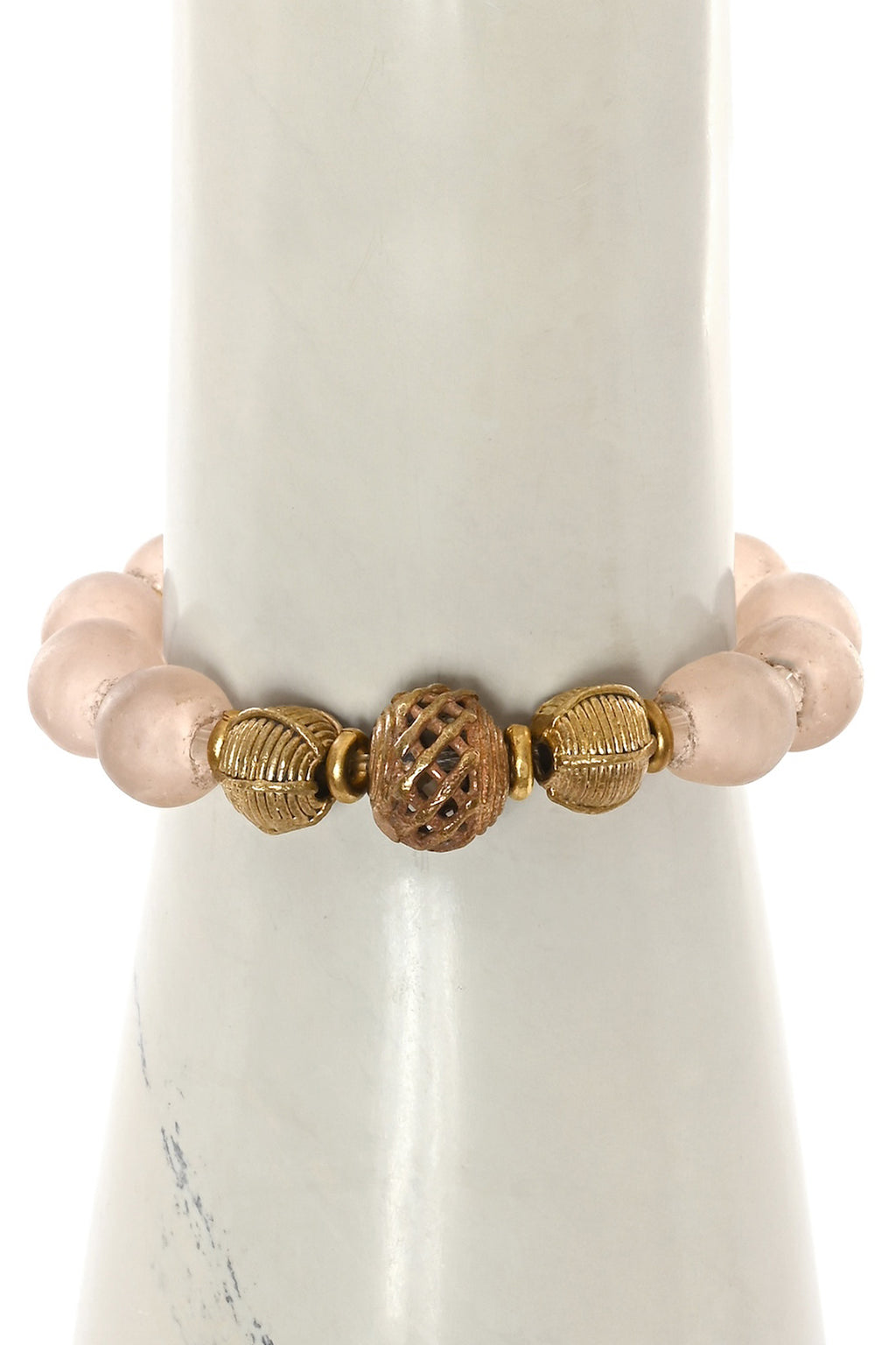 Pink Blush Glass & Brass Stretch Bracelet