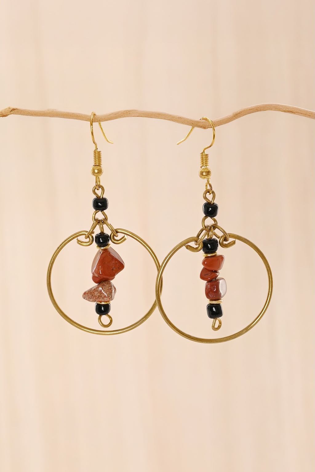Red & Black Stone Swing Earrings