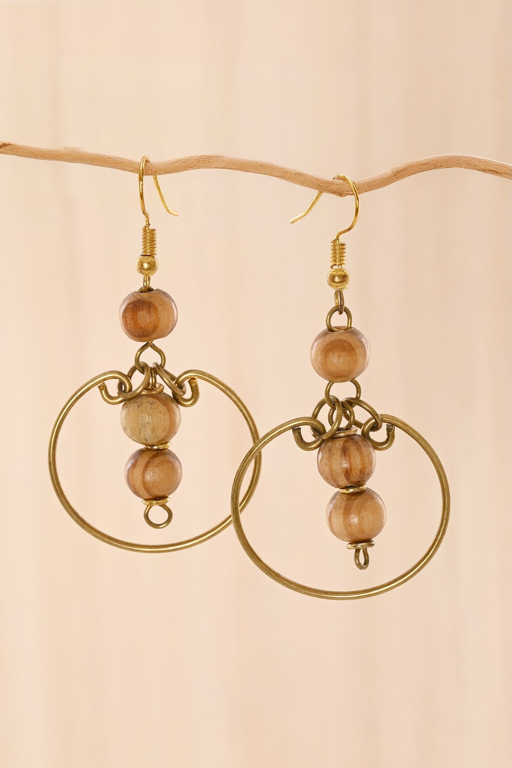 Natural Wood & Brass Swing Earrings