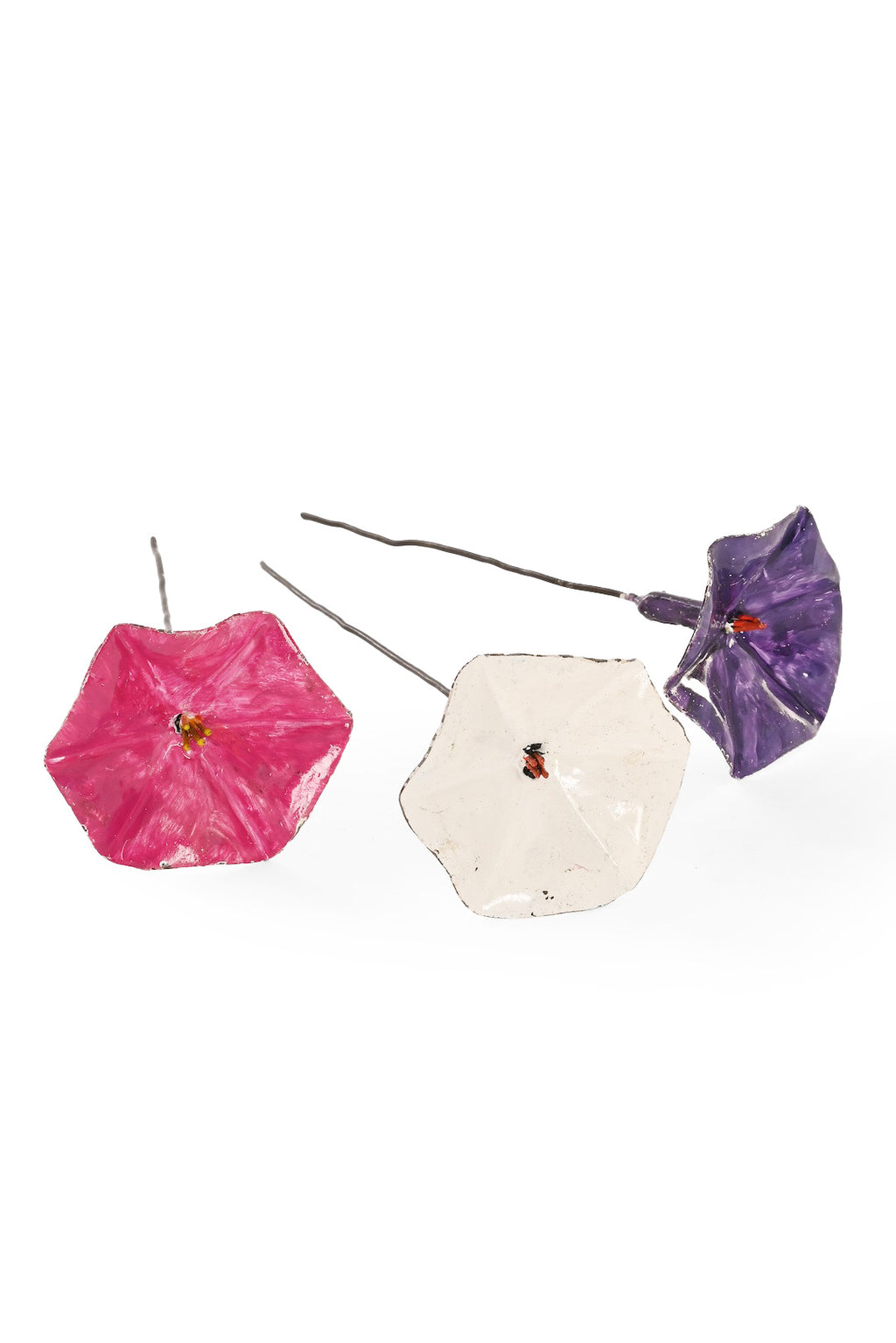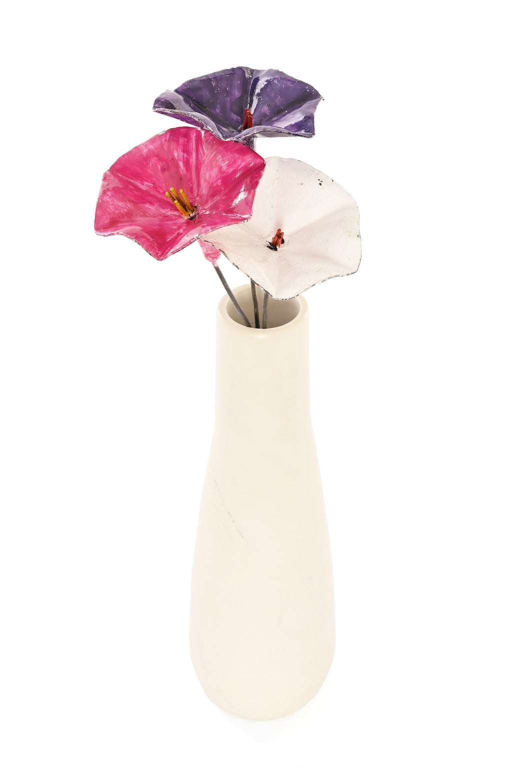 Small Metal Petunia Flower Garden Stake – White
