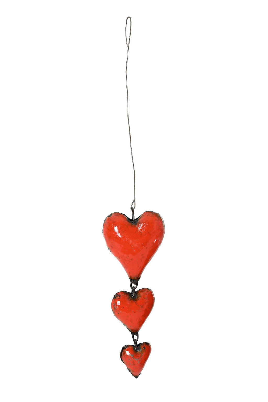 Recycled Metal Triple Hanging Hearts Sculpture