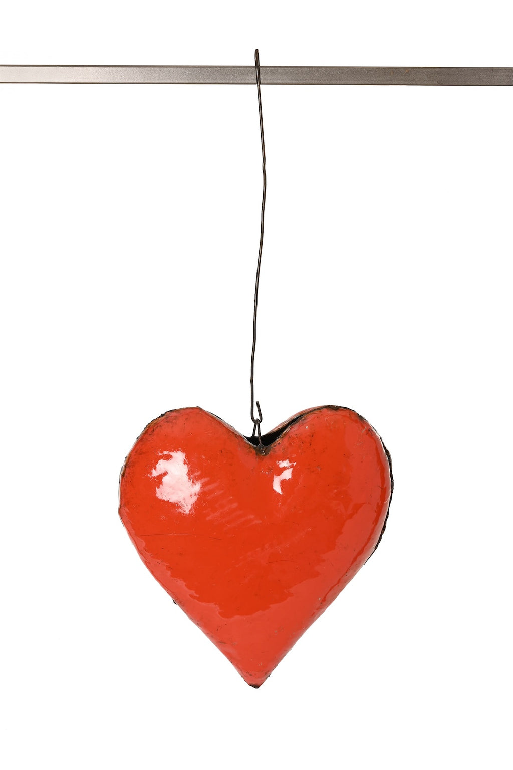 Large Recycled Metal Hanging Heart Sculpture