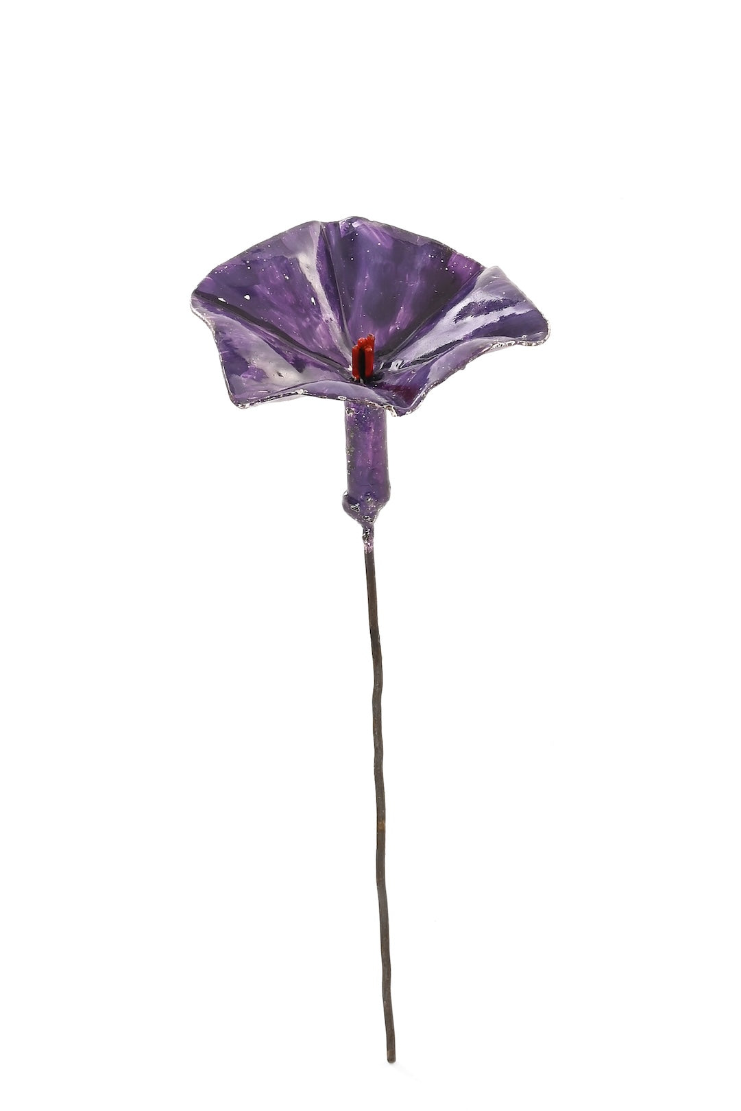 Zimbabwean sculptors create a unique textural element for the garden in this vibrant purple petunia flower garden stake. Crafted from discarded metal and paint, each can be easily pressed into a potted plant or in the garden among bushes or blooms.
