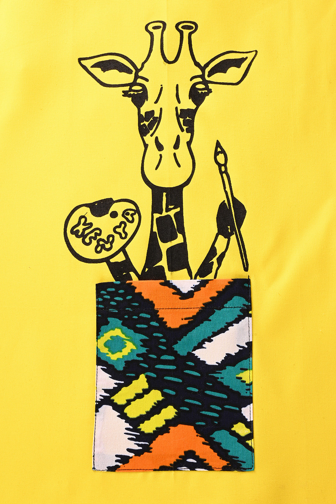 Yellow Cotton Kids' Craft Apron with Giraffe and Colorful Pocket
