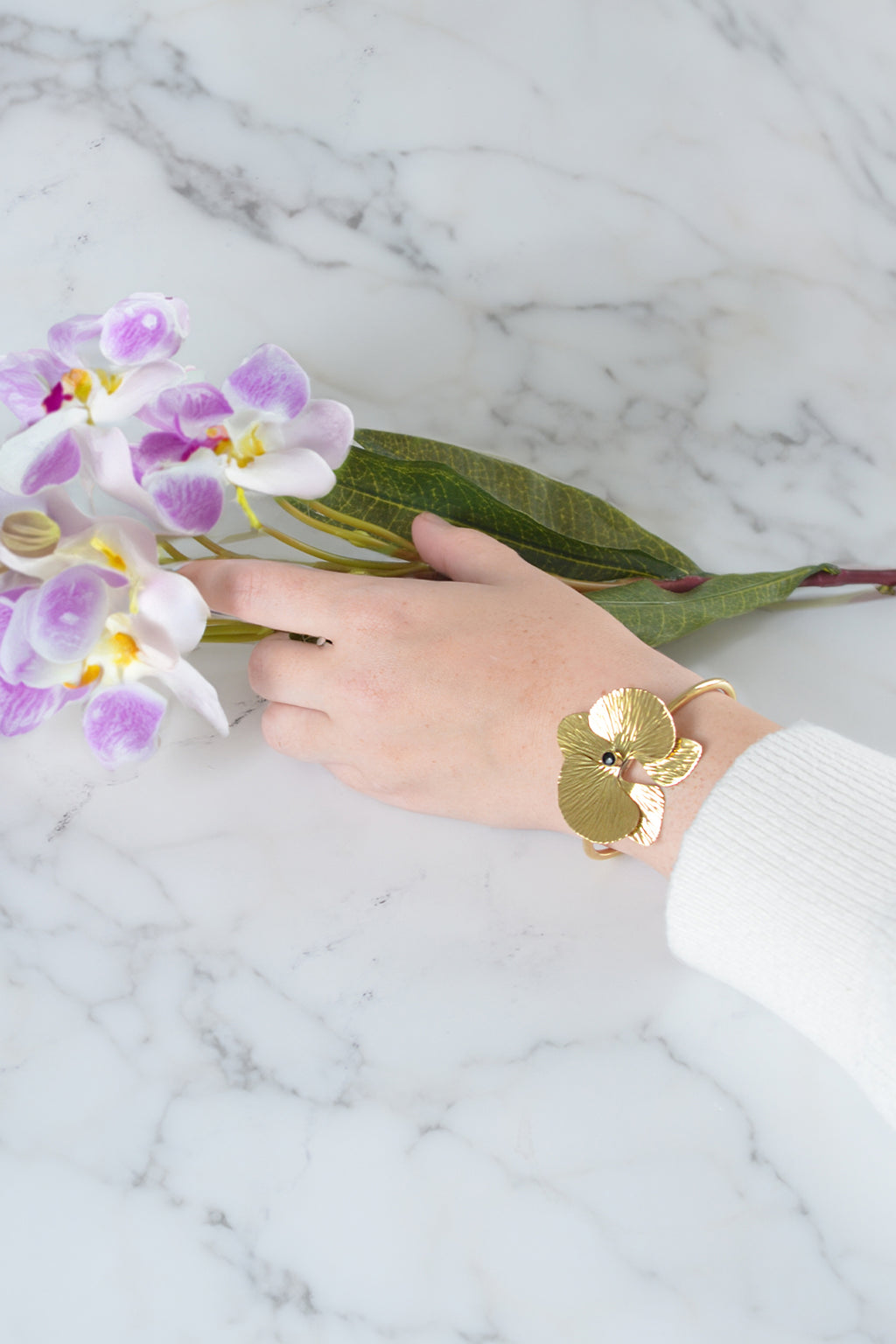 Kenyan Brass & Cow Horn Orchid Bracelet