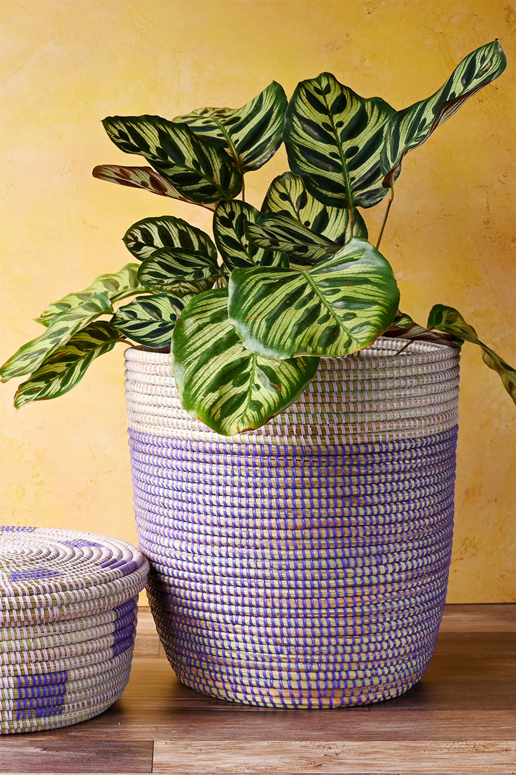 Lavender & Purple Herringbone Flat Lid Hamper Basket