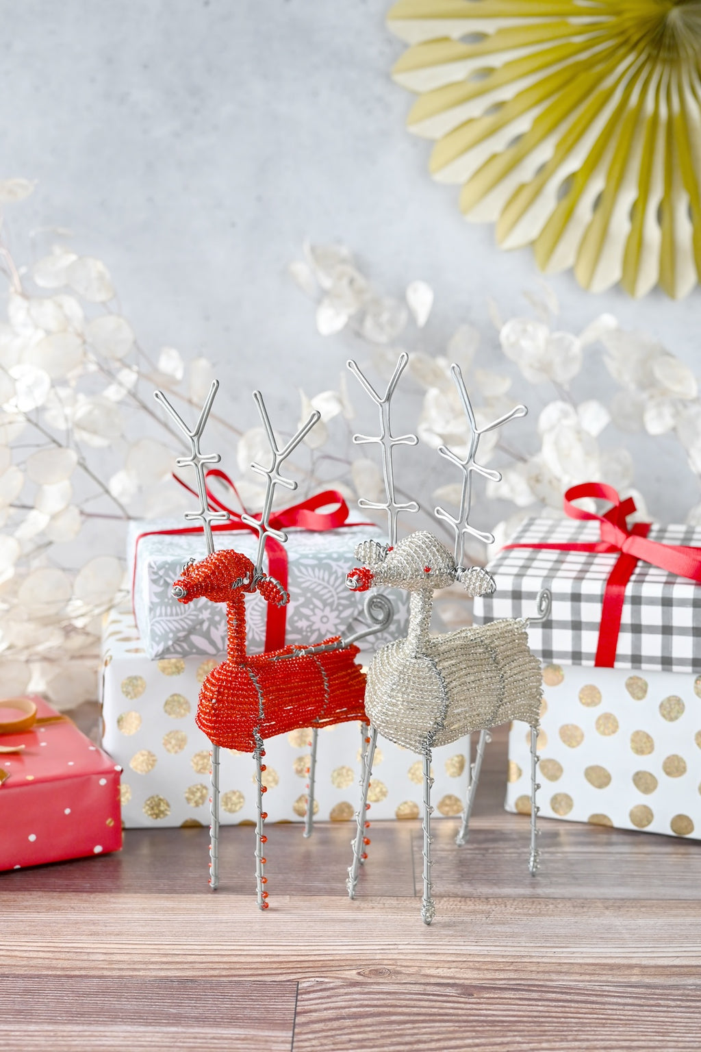 Red Beaded Wire Holiday Reindeer Ornament