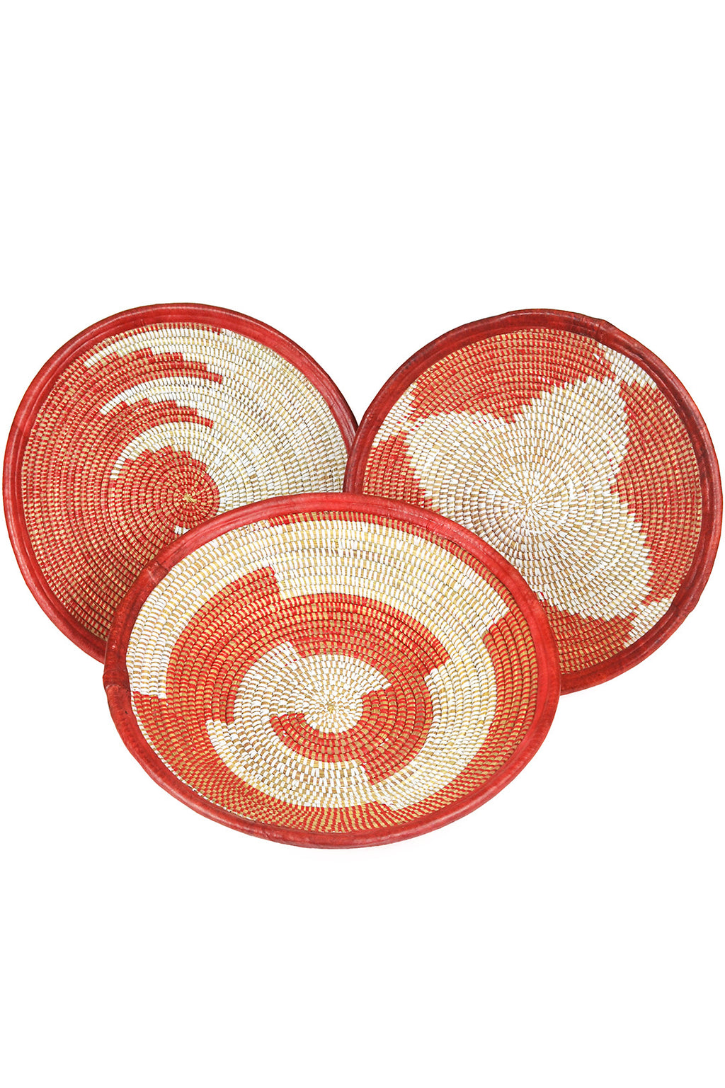 Red and White Leather Trimmed Baskets in Assorted Patterns