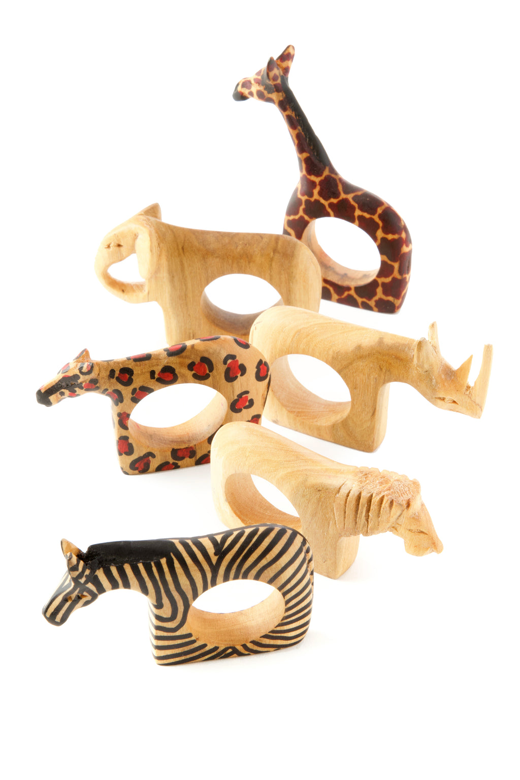 Set of Six Jacaranda Safari Animal Napkin Rings