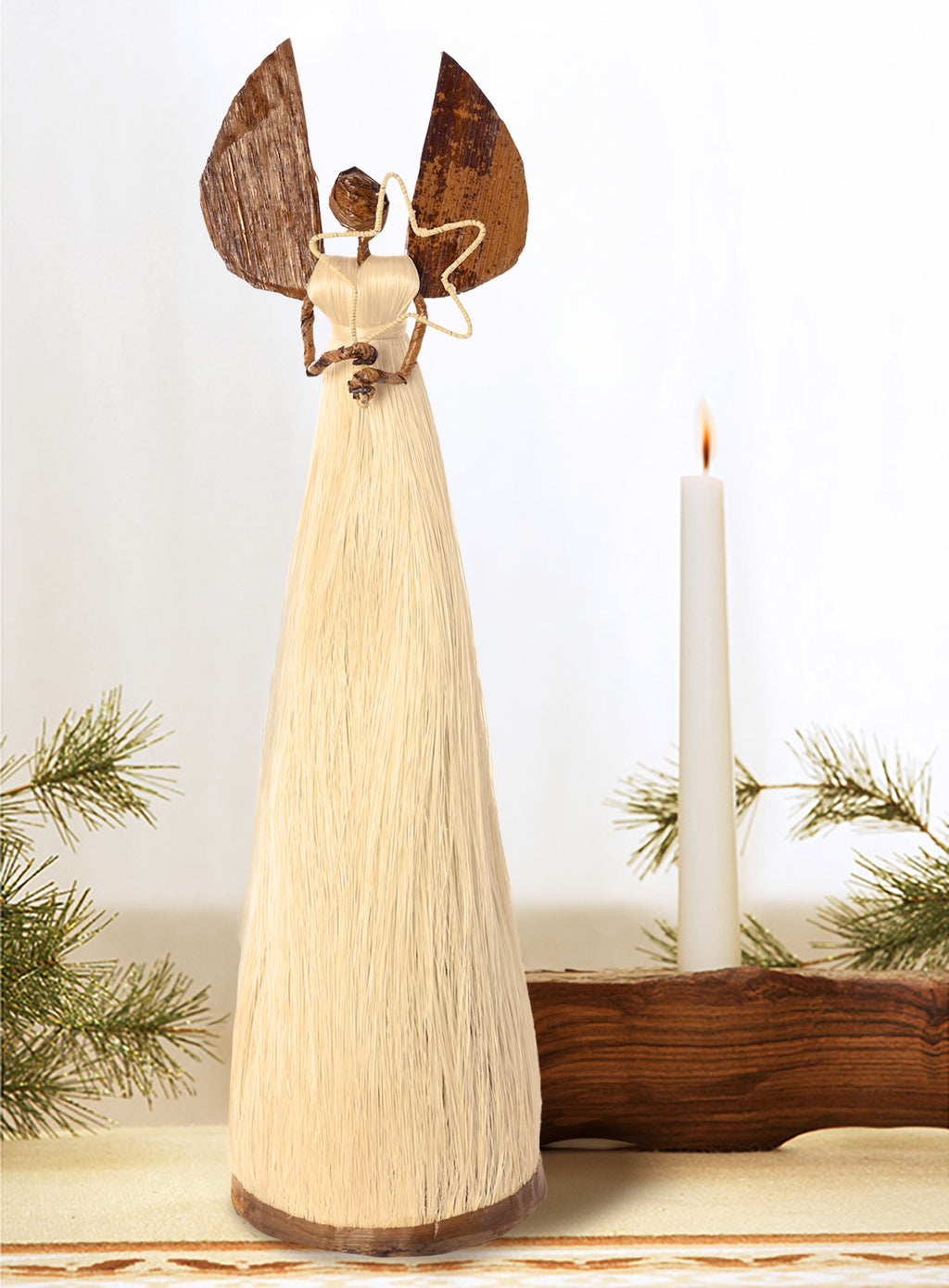 Tall Natural Sisal Angel of Light Holiday Sculpture