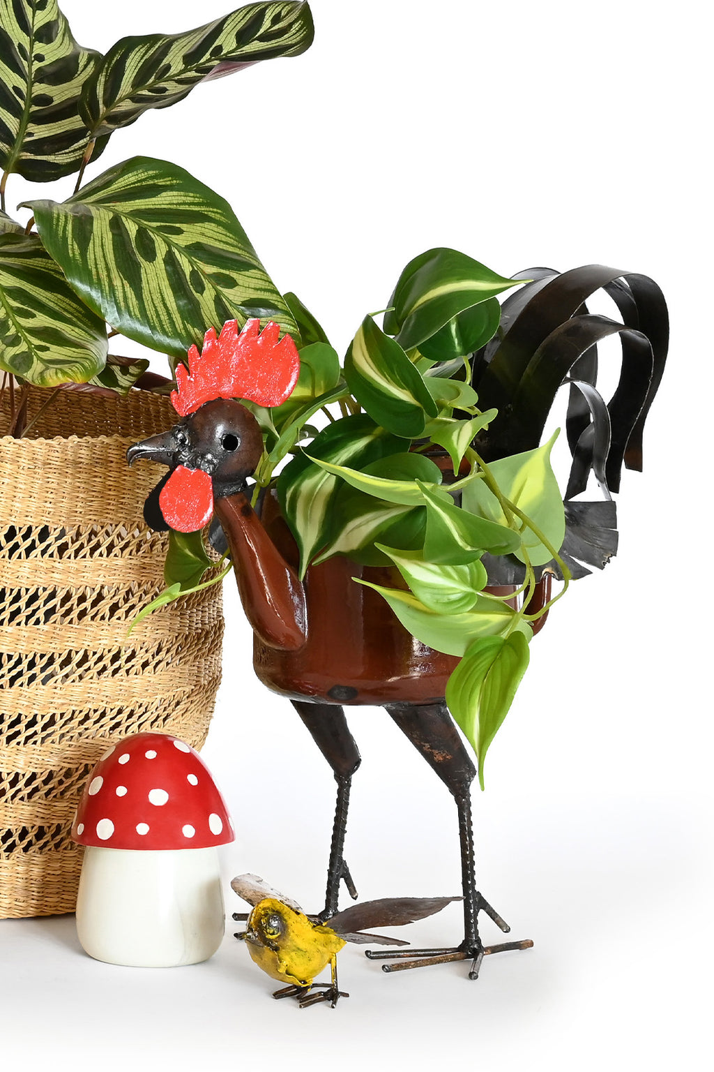 Small Zimbabwean Recycled Teapot Rooster Planter