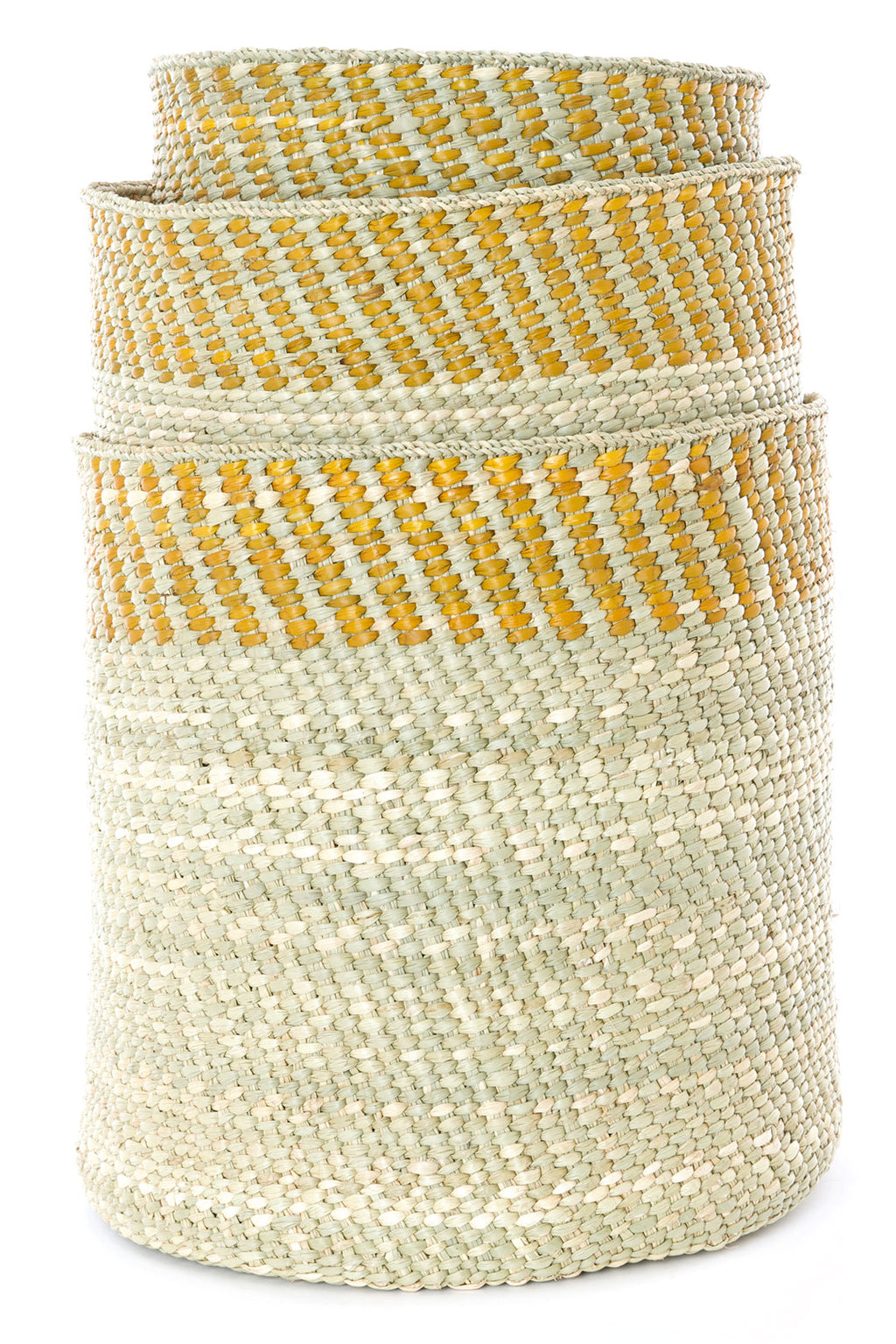 Yellow & Natural Maila Milulu Reed Baskets TZB12C  Large