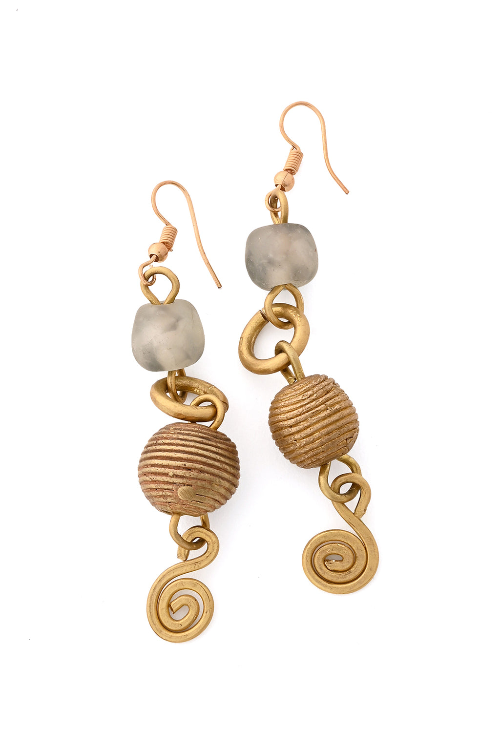 Brass & Recycled Glass Spiral Sands Earrings
