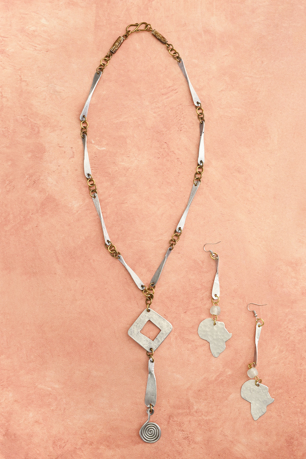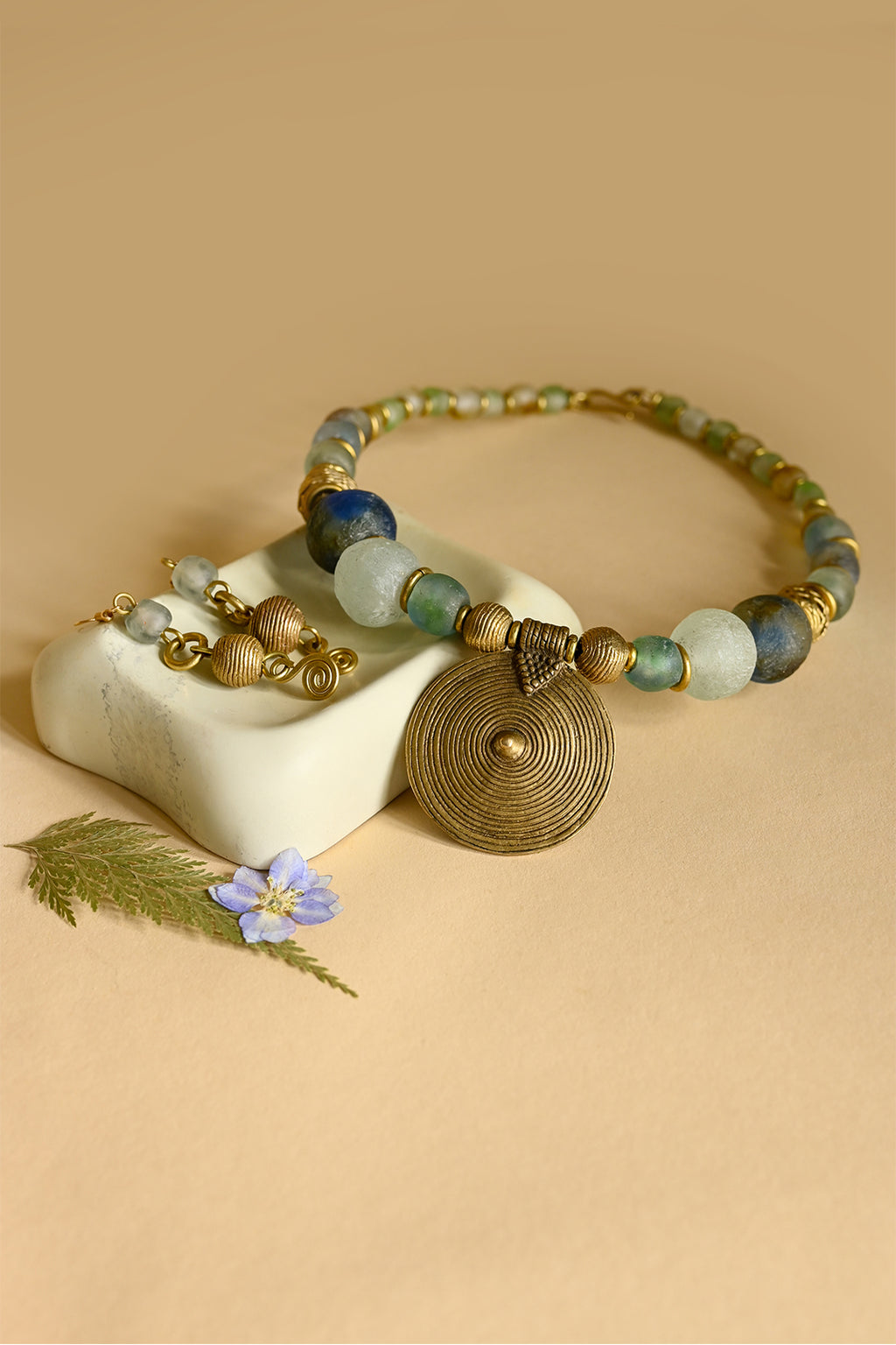 Brass & Recycled Glass Spiral Sands Necklace