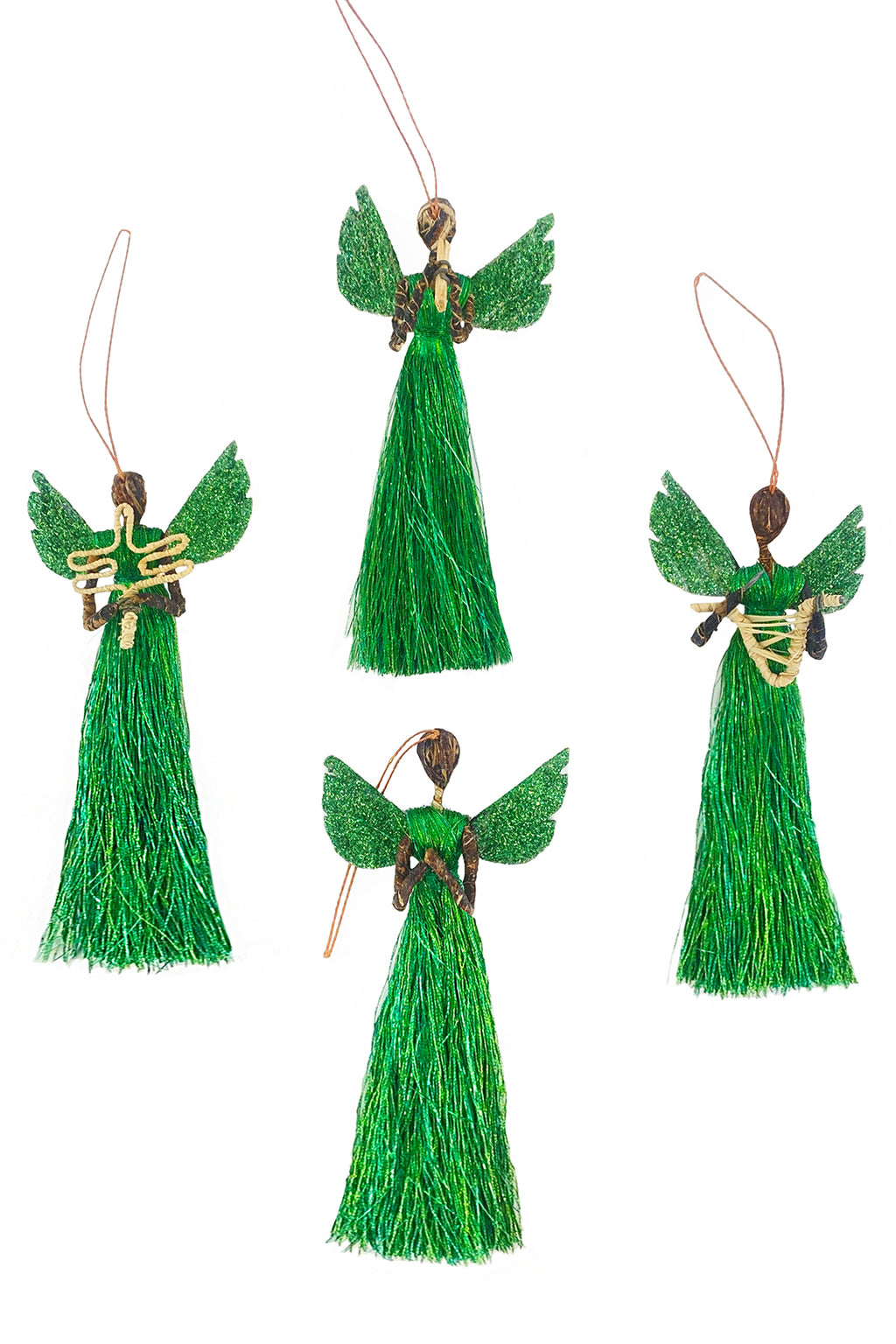 Emerald Shimmer Banana Fiber & Thread Angel Ornament