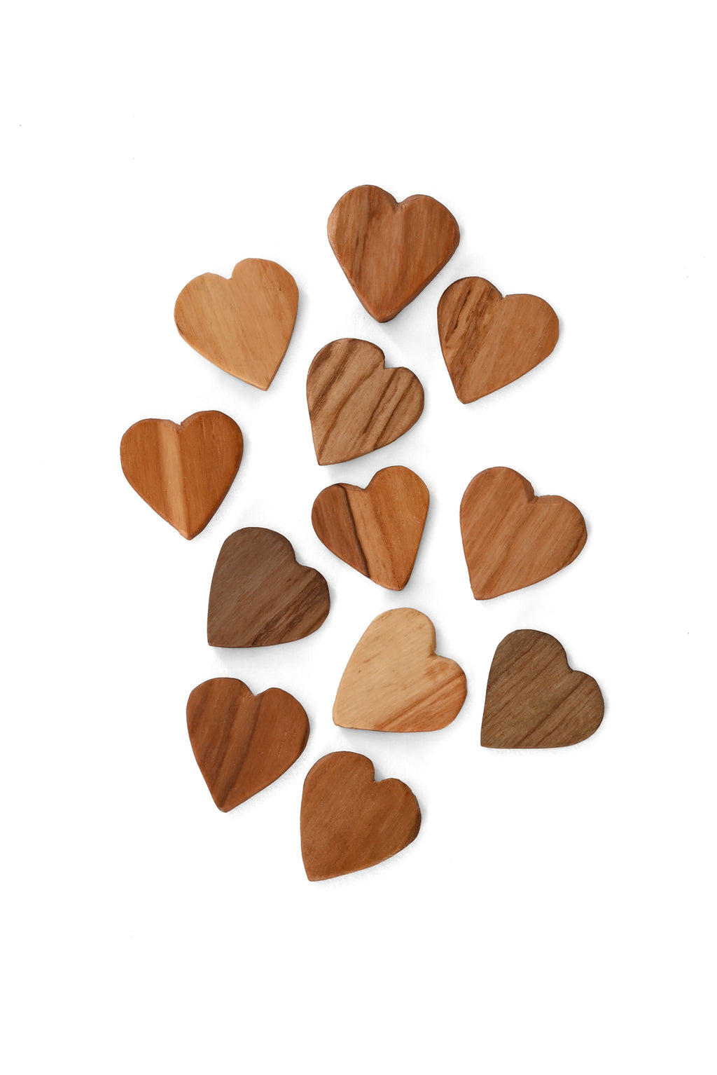 Dozen Olivewood Tiny Heart Tokens