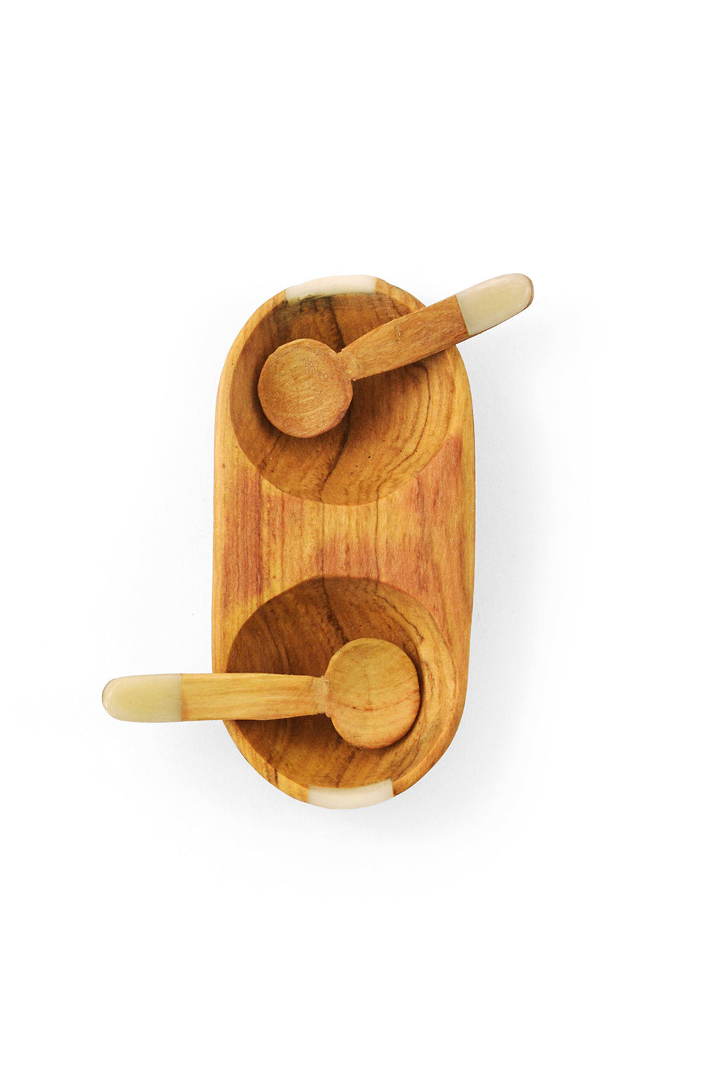 Double Wild Olive Wood Condiment Bowl with Spoons Default Title