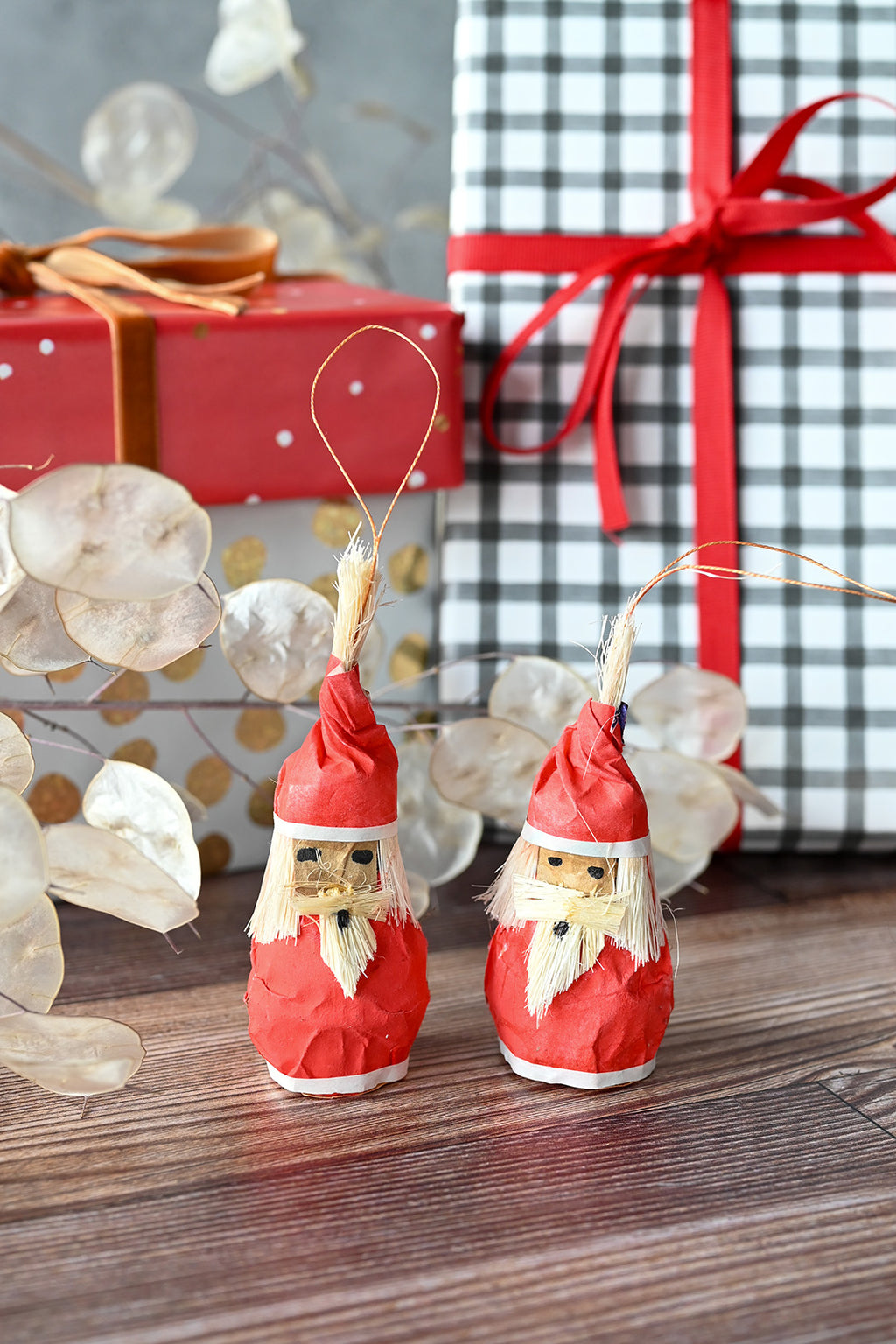Festive Red Gnome Santa Holiday Ornaments