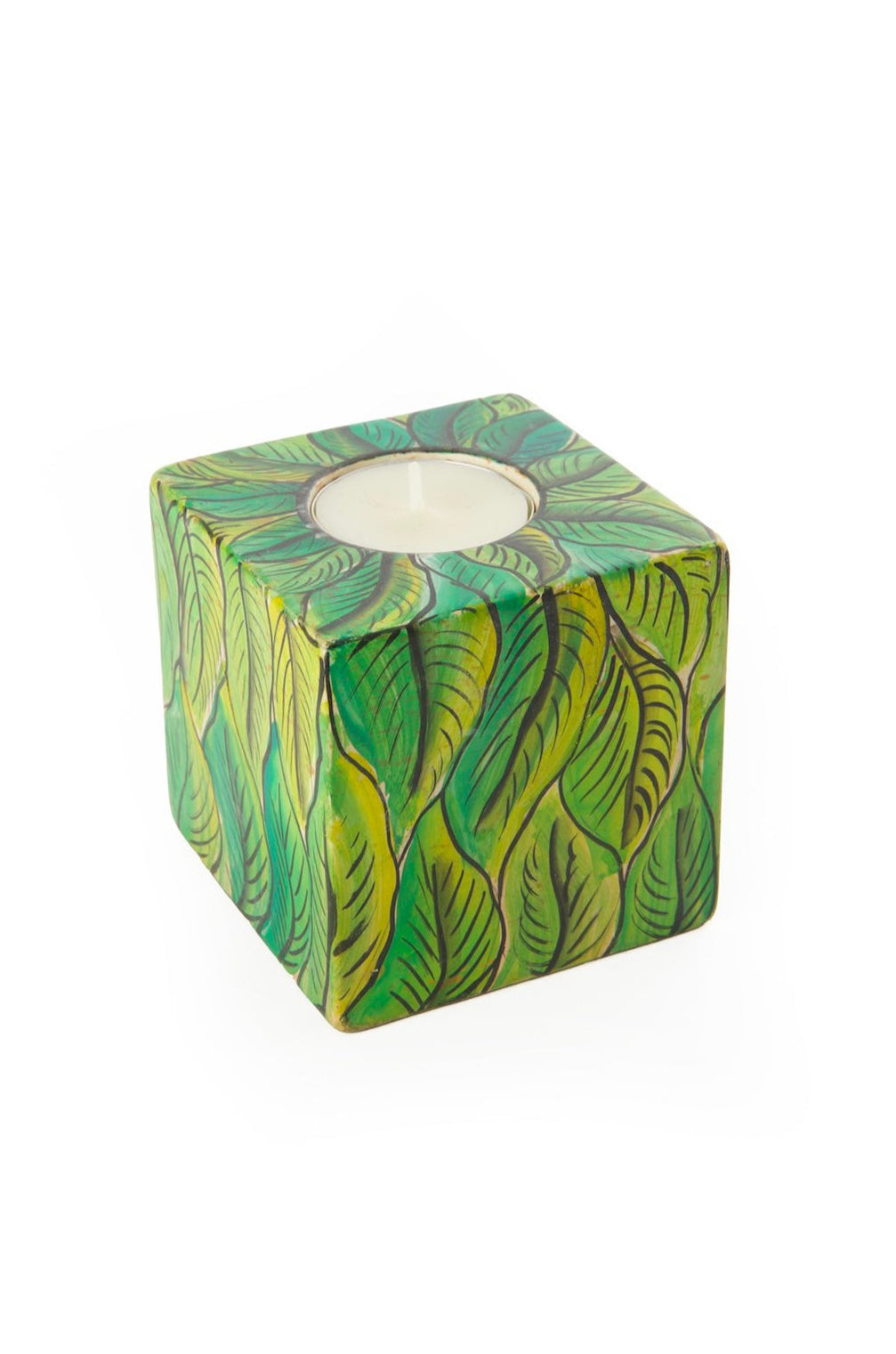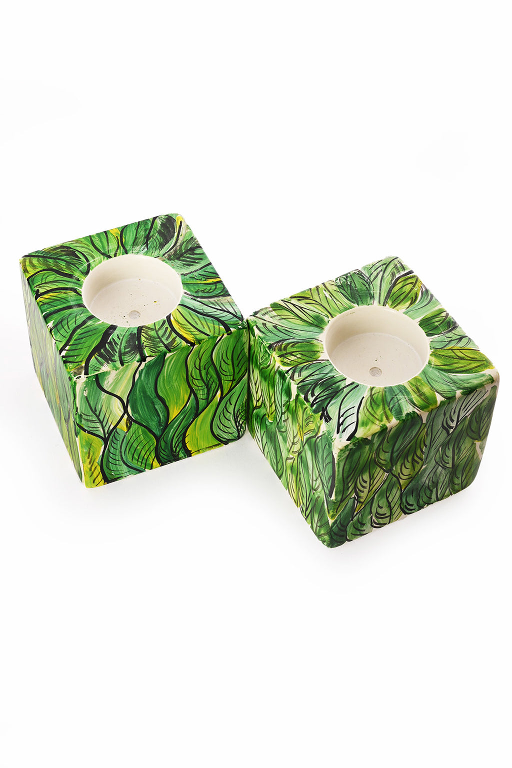 Hand-painted Botanical 3" Cube Soapstone Tea Light Candle Holder