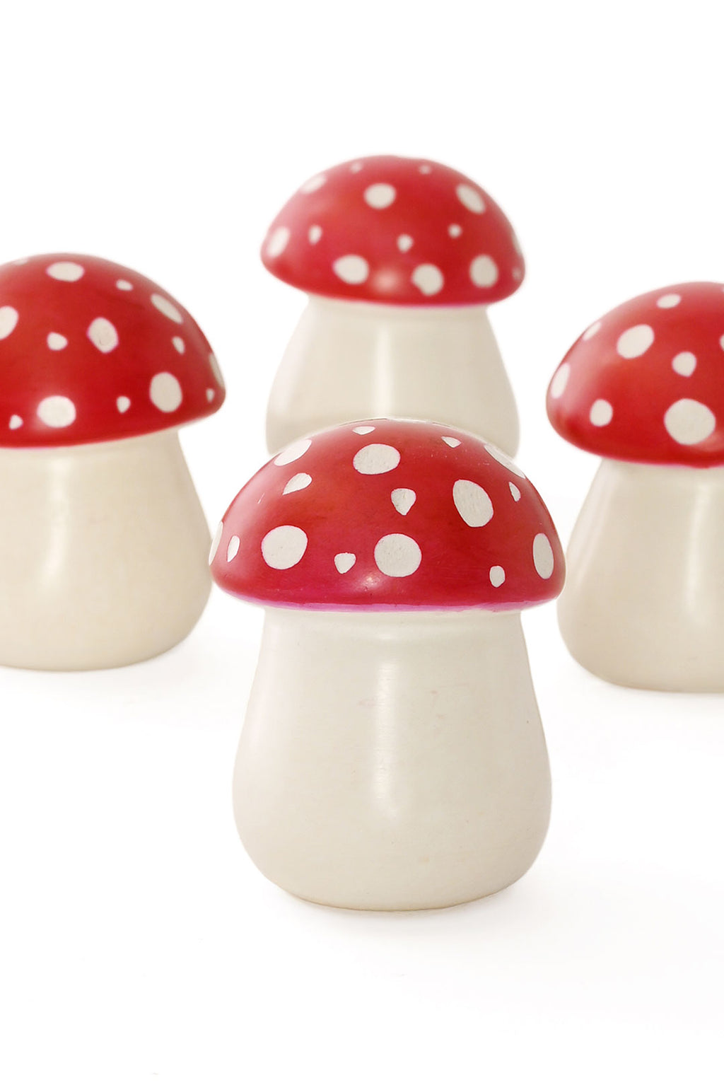 Set of Four Colorful Cartoon Mushroom Sculptures