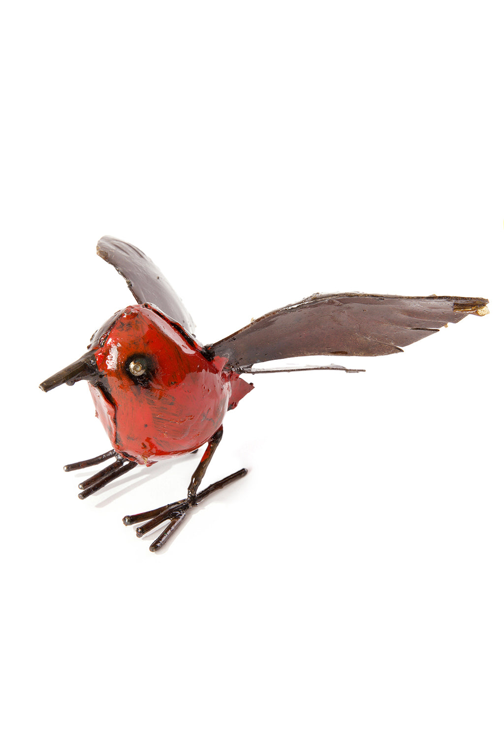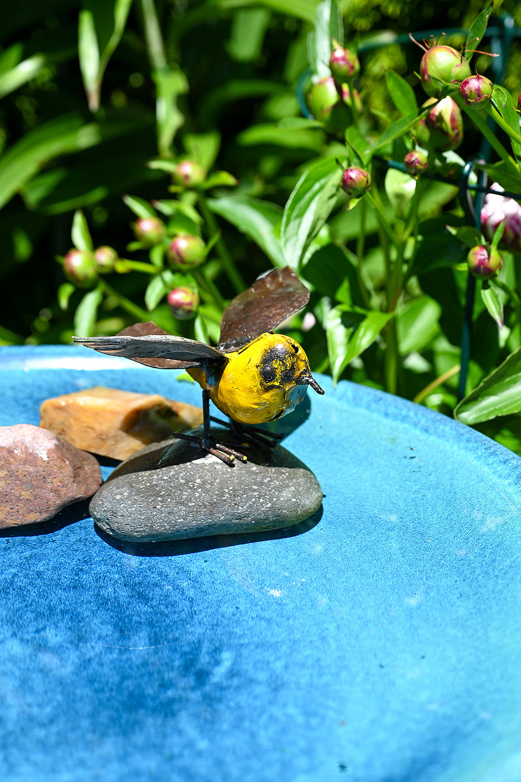 Yellow Recycled Metal Fluttering Bird Sculpture