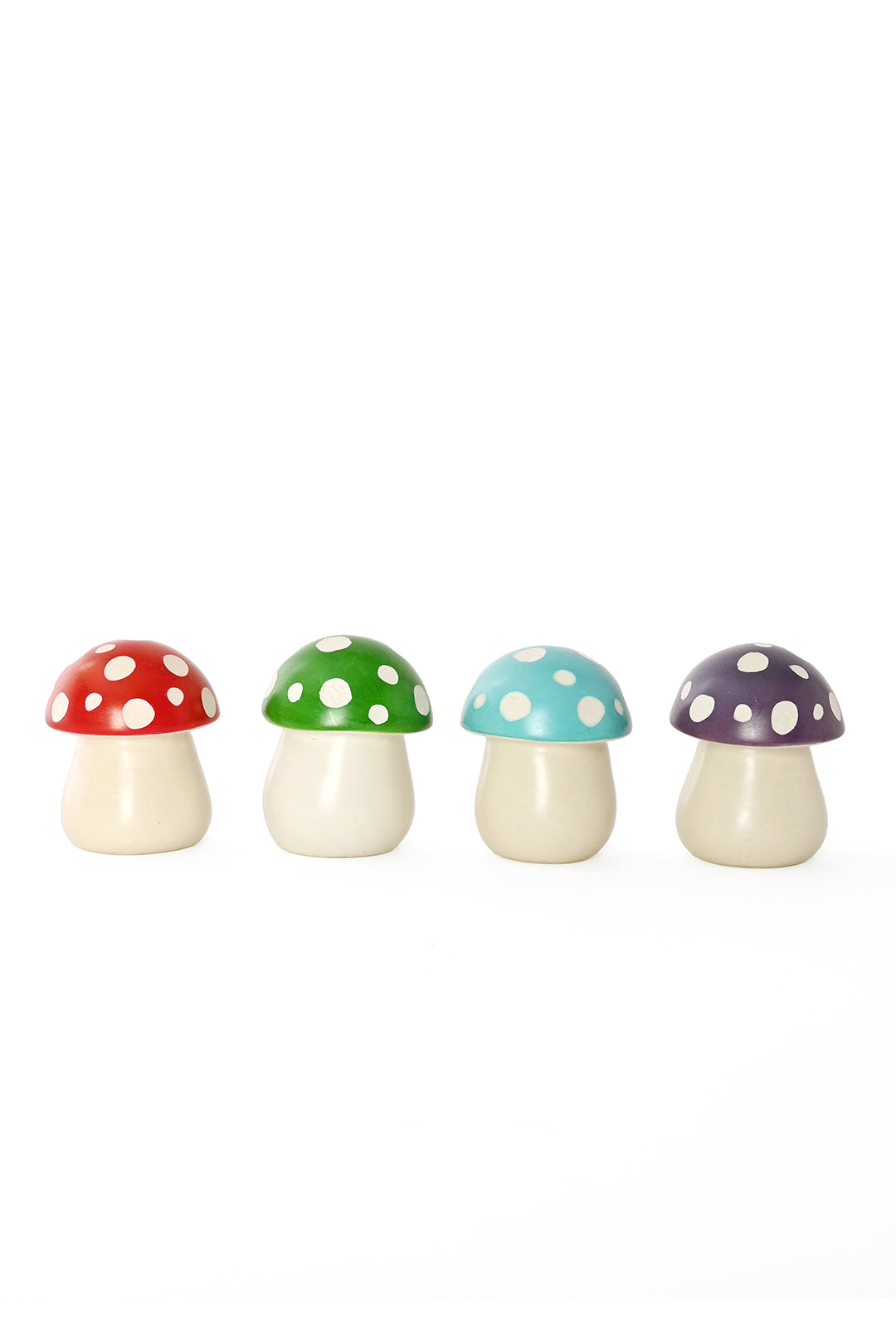 These mushrooms are absolutely fantastic! Artisans in Kenya hand carve each small sculpture from soft soapstone, add a colorful dyed cap, and then etch in iconic dots. Customers will love finding places for these little treasures to pop up unexpectedly.