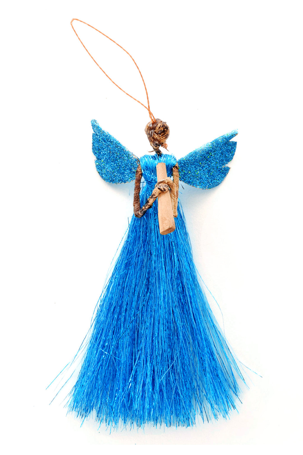 Azure Shimmer Banana Fiber & Thread Angel Ornament