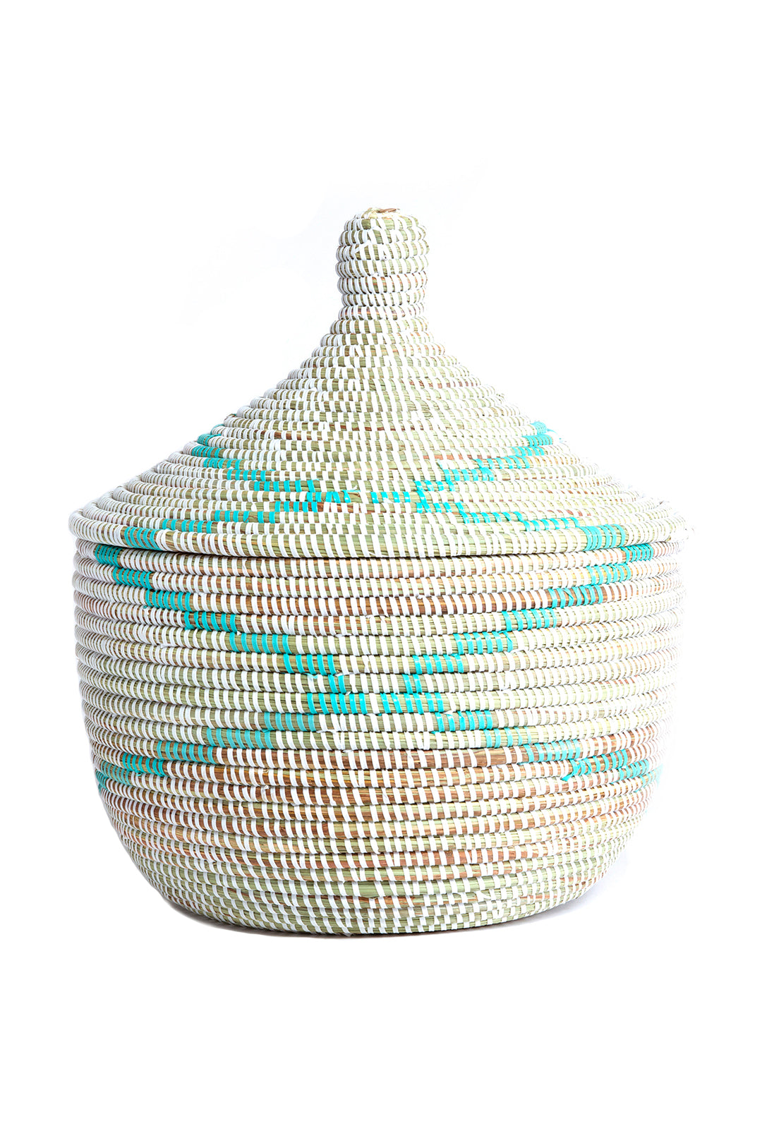 This beautiful basket is handcrafted by rural Wolof women in Senegal from cattail stalks and strips of salvaged plastic. With a snug fitting lid, our warming baskets are a perfect way to present baked goods to loved ones, or to create a memorable gift basket of your own design.