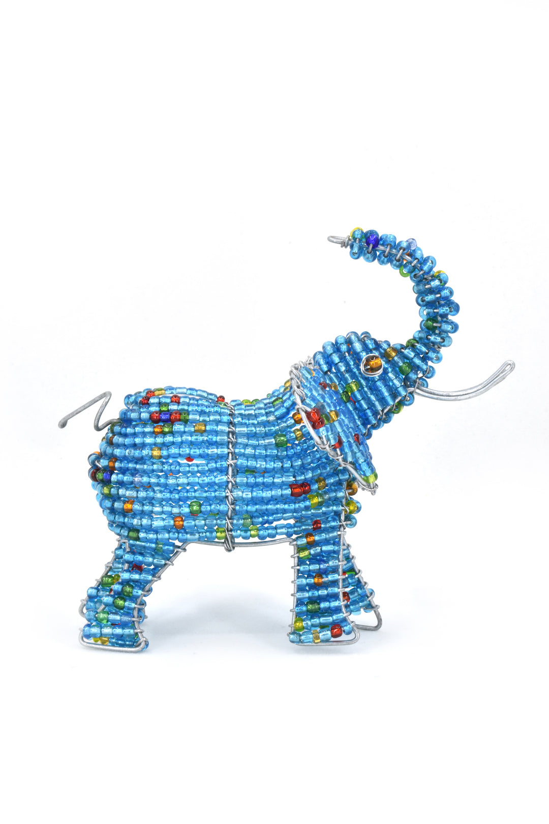 Patmore's Aqua Blue Beaded Elephant Sculpture