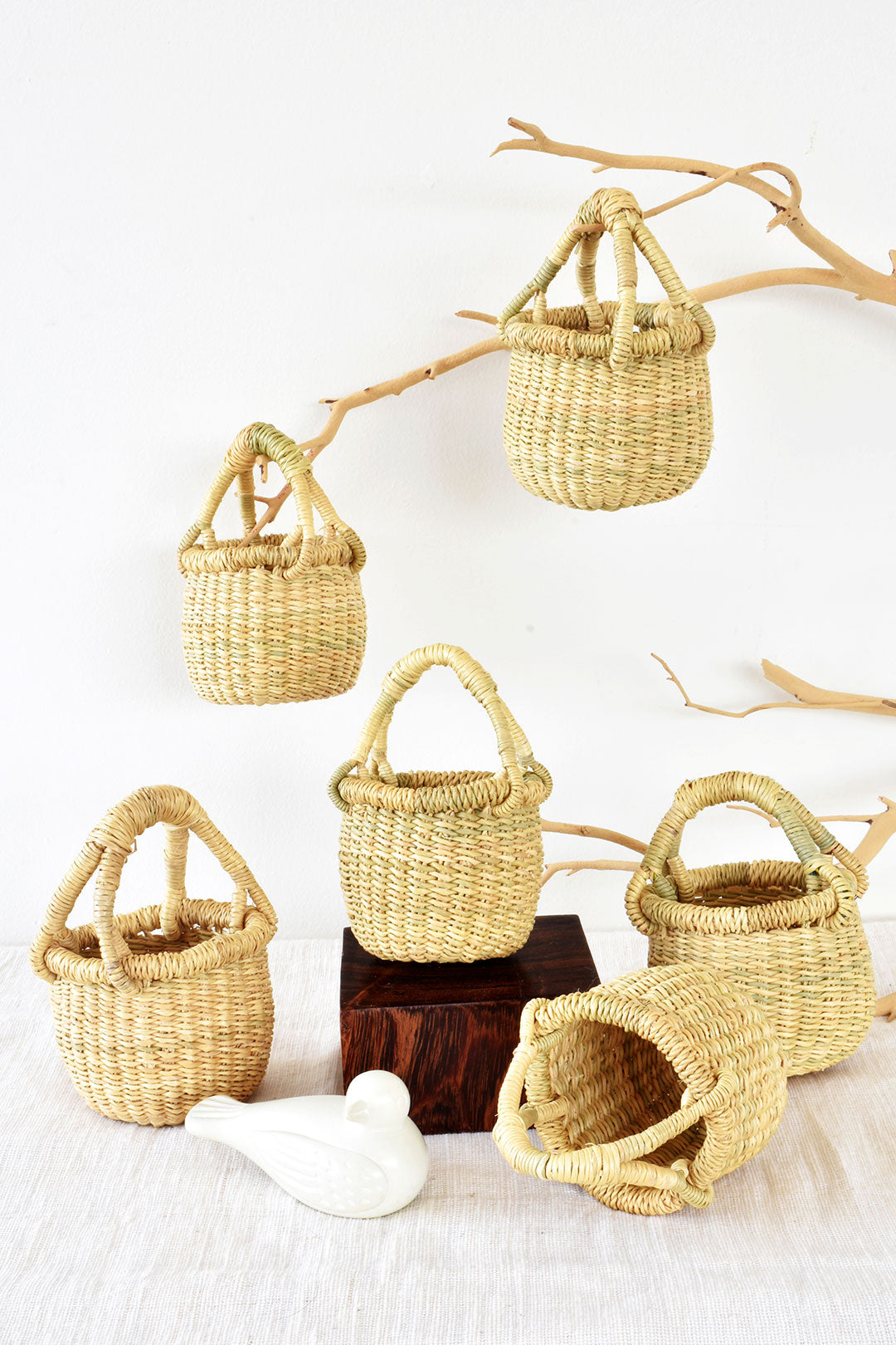 These miniature Bolga baskets offer a truly sweet way to offer small gifts, or to store small items on the tabletop.