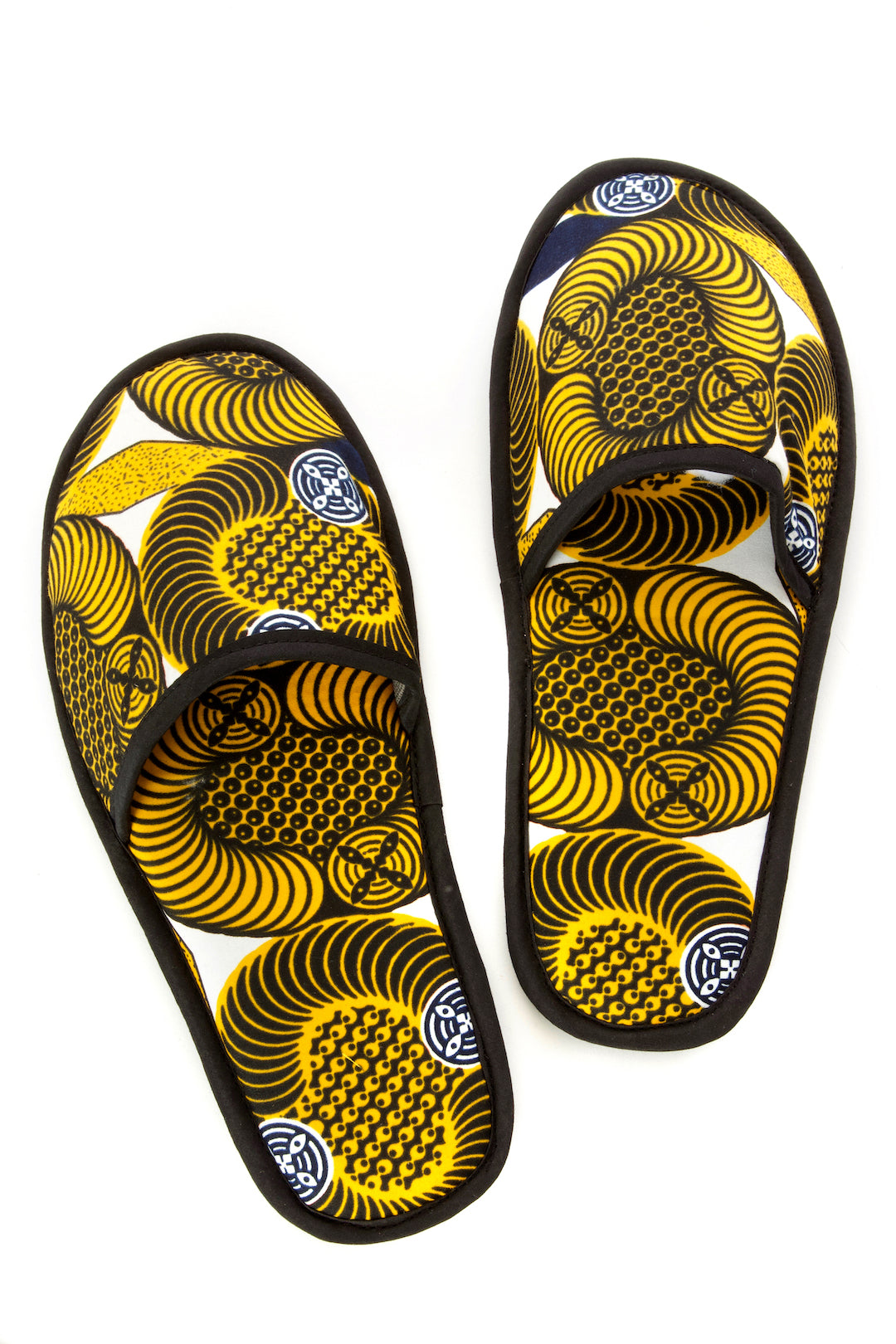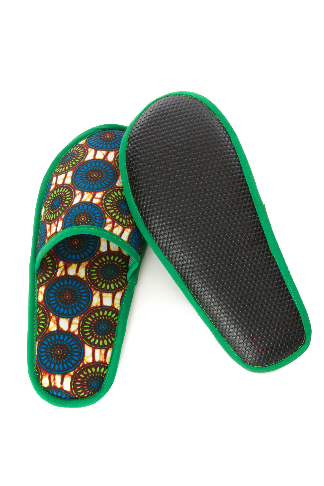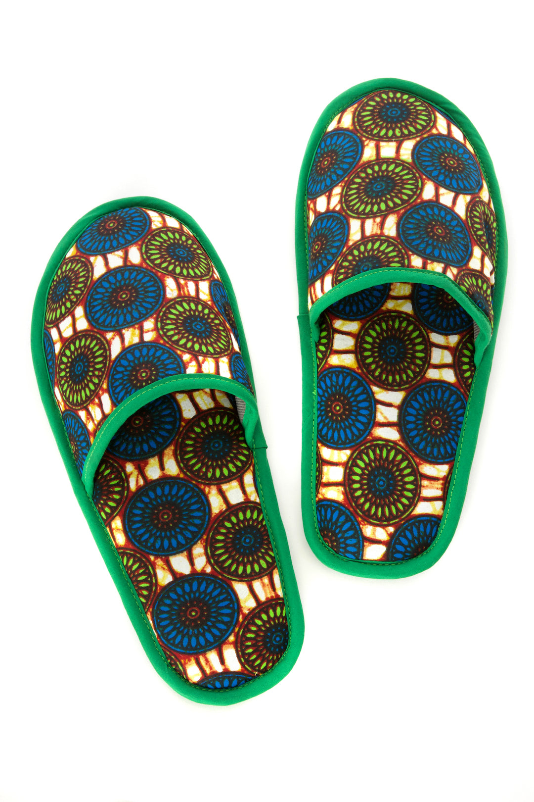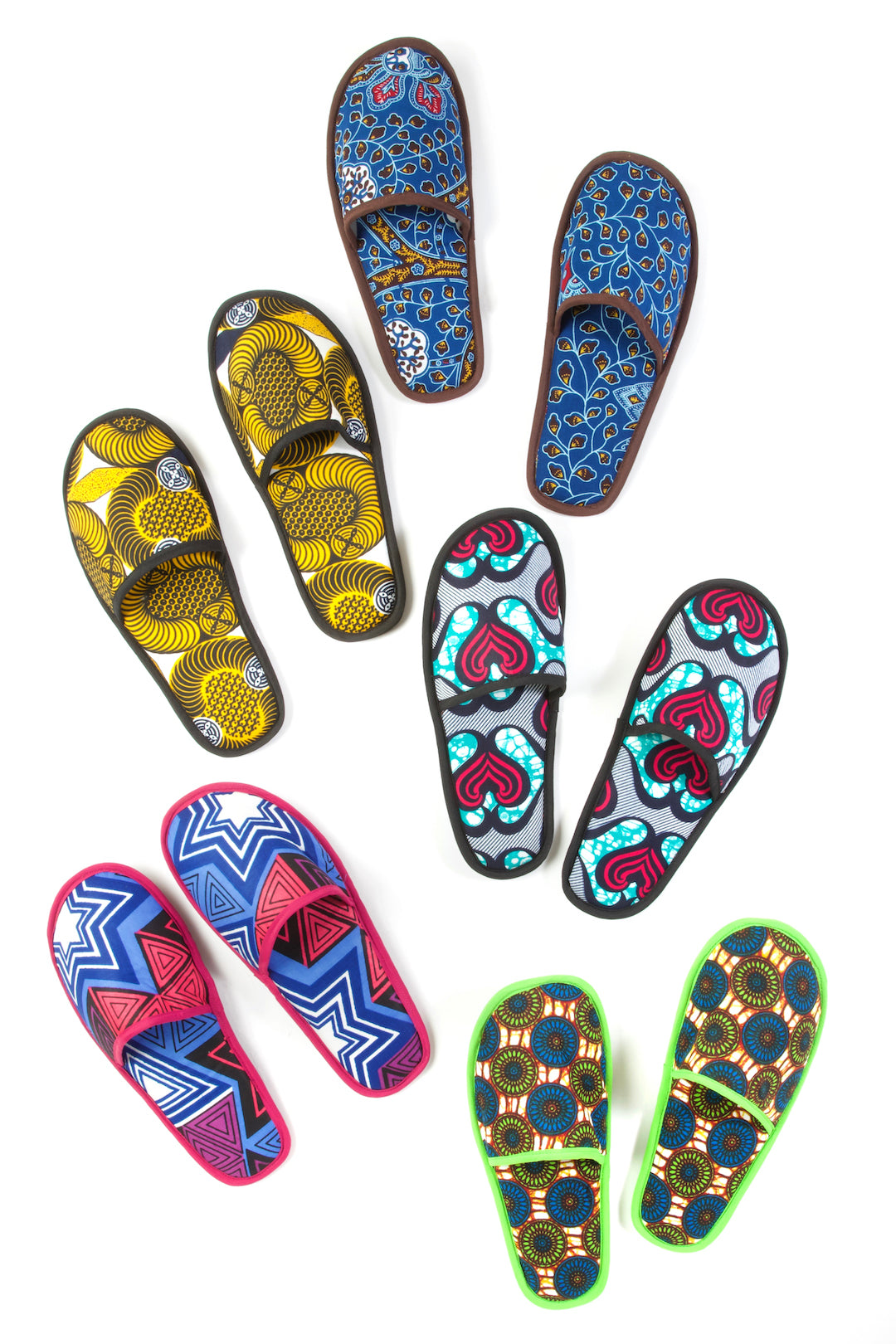 Ghanaian artisans put fun ankara wax cloth to work as comfy slippers. With a foam footbed, anti-slip bottom and contrasting trim, these sweet slippers showcase the brilliant colors and patterns of African wax cloth.
