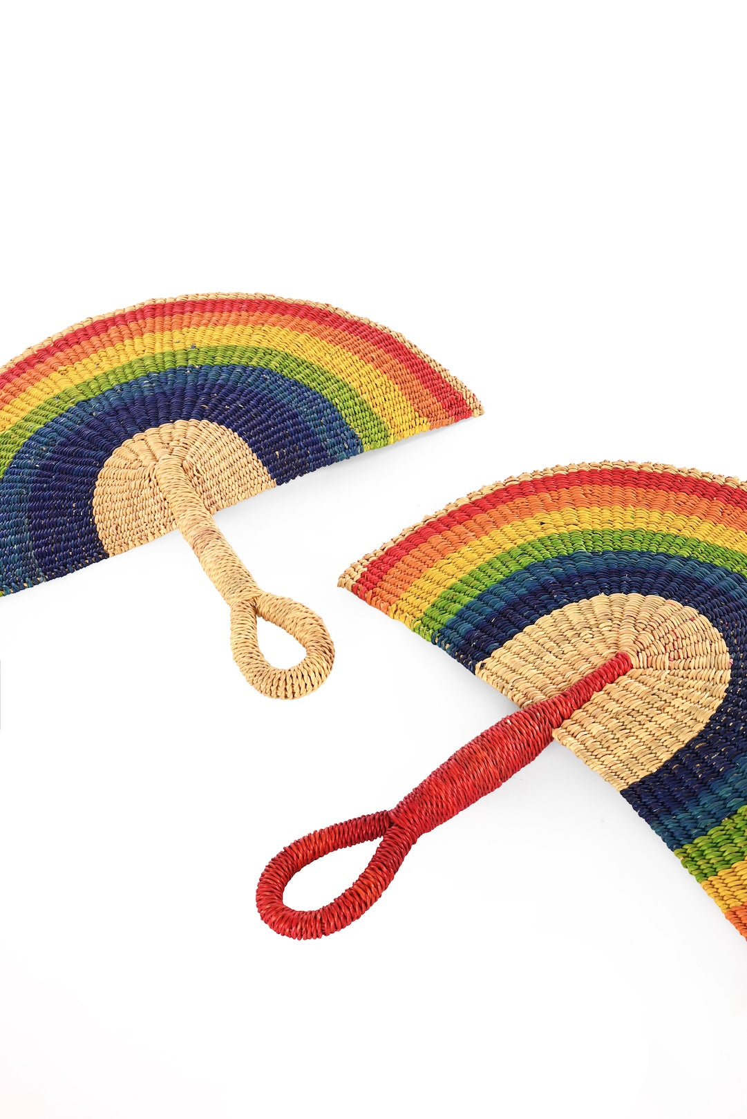 Rainbow Elephant Grass Half-Moon Hand Fan