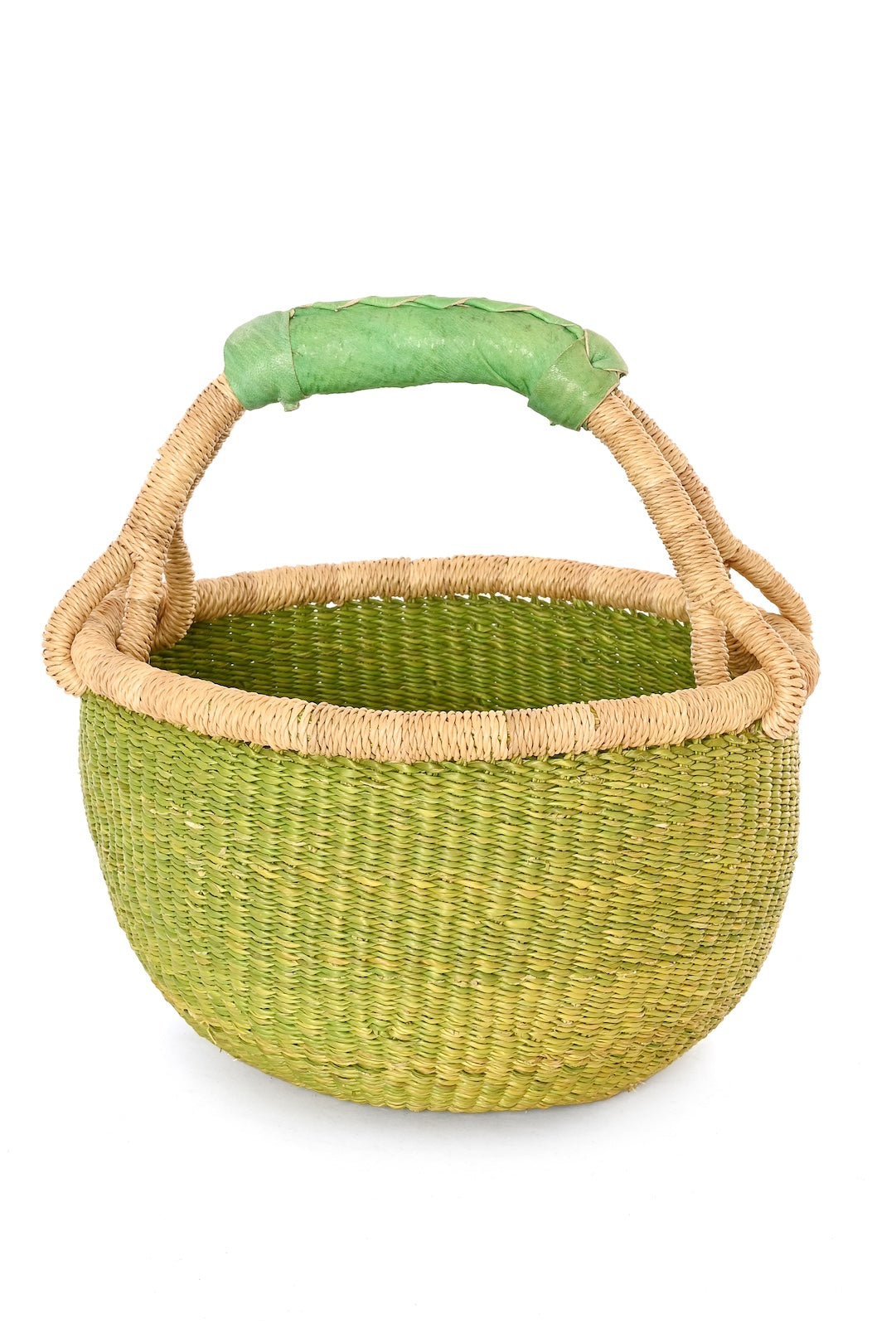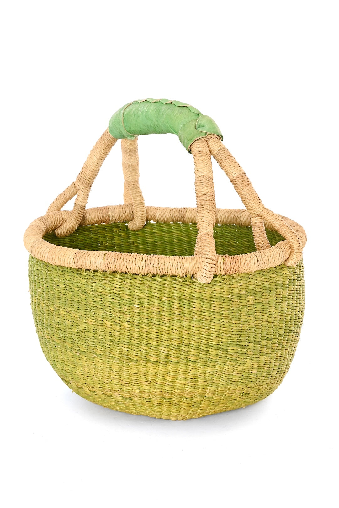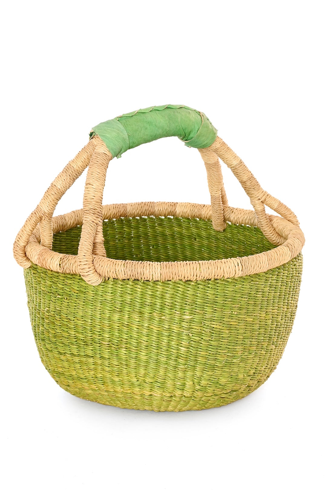 Artisans in the Bolgatanga region of Ghana weave this smaller version of our beautiful and durable Bolga basket from thick, tough elephant grass. A popular choice among green shoppers, errand runners, and picnic planners worldwide, Bolga baskets stand up to use and abuse and remain functional and beautiful for years.