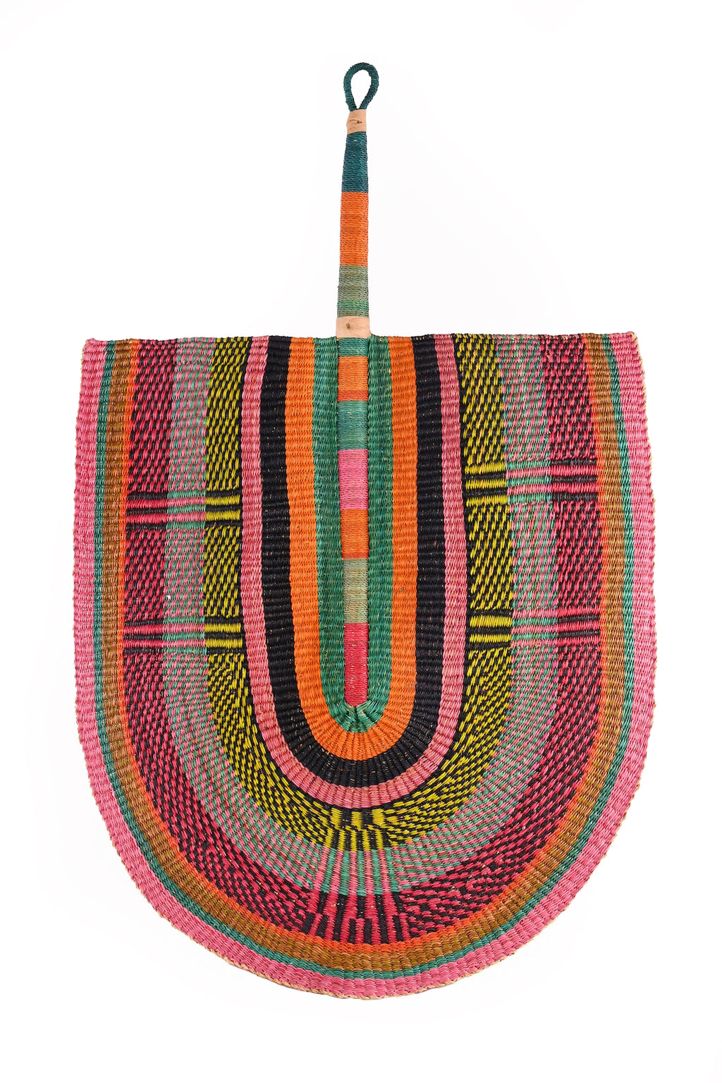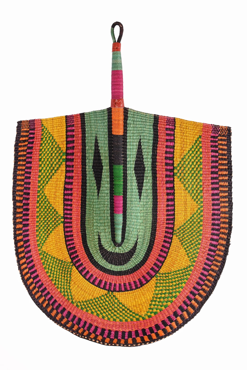 Assorted Ankara African Hand Fans with Brown Leather Handles