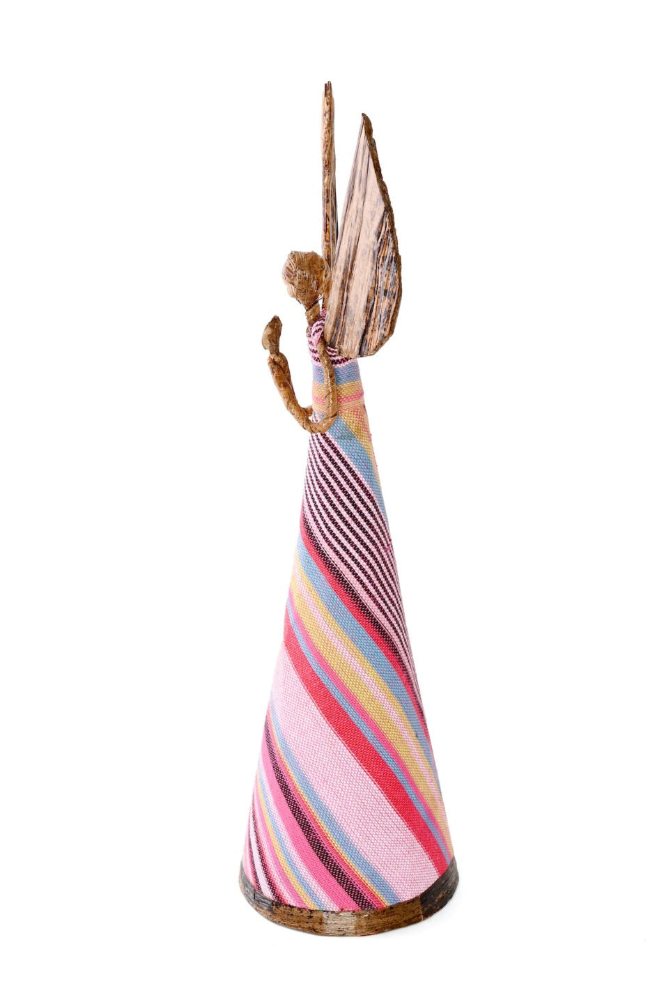 Kenyan artisans craft these beautiful angel holiday sculptures from traditional, woven kikoi textile and banana fiber. Using natural materials allows artisans to earn income with no stress on their environment, and the rustic nature of these handcrafted sculptures adds a distinctive natural touch to holiday decor.