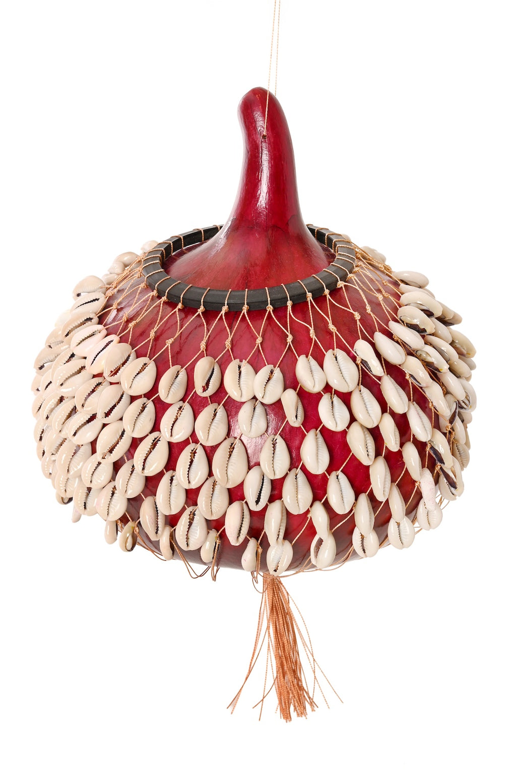 Large Red Calabash Gourd and Cowrie Shell Shekere