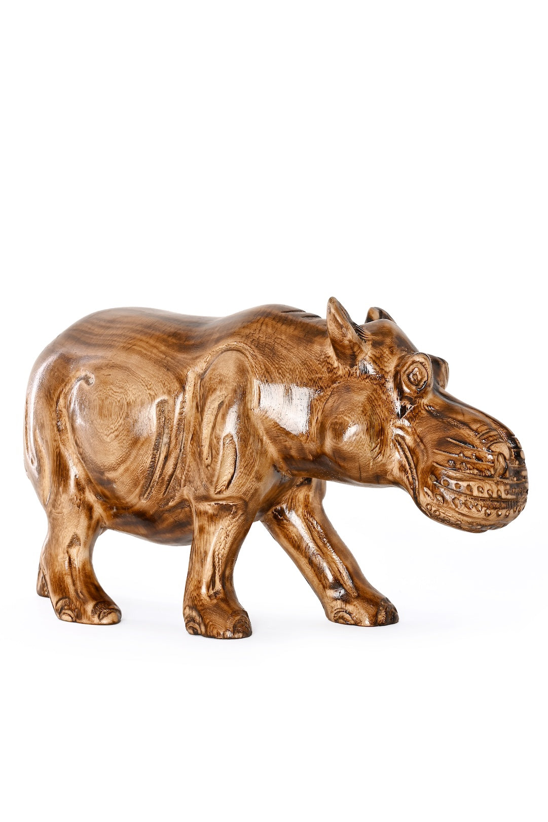 Talented Kenyan carvers carve this substantial hippo sculpture from jacaranda wood, finished with burned contours. Because these sculptures are fully handmade, each hippo exhibits its own characteristics.