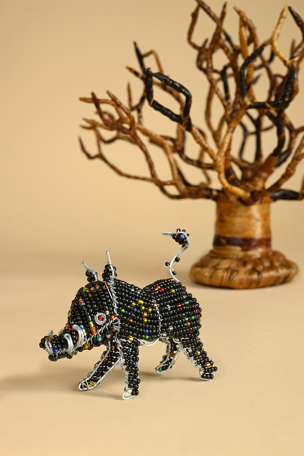 Patmore's Charcoal Blue Beaded Elephant Sculpture