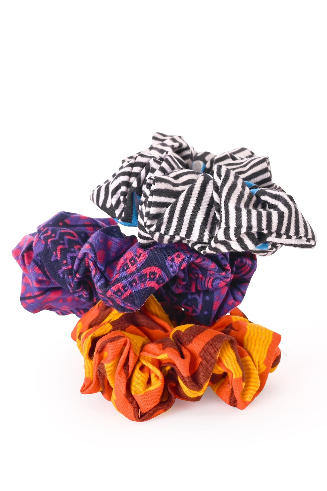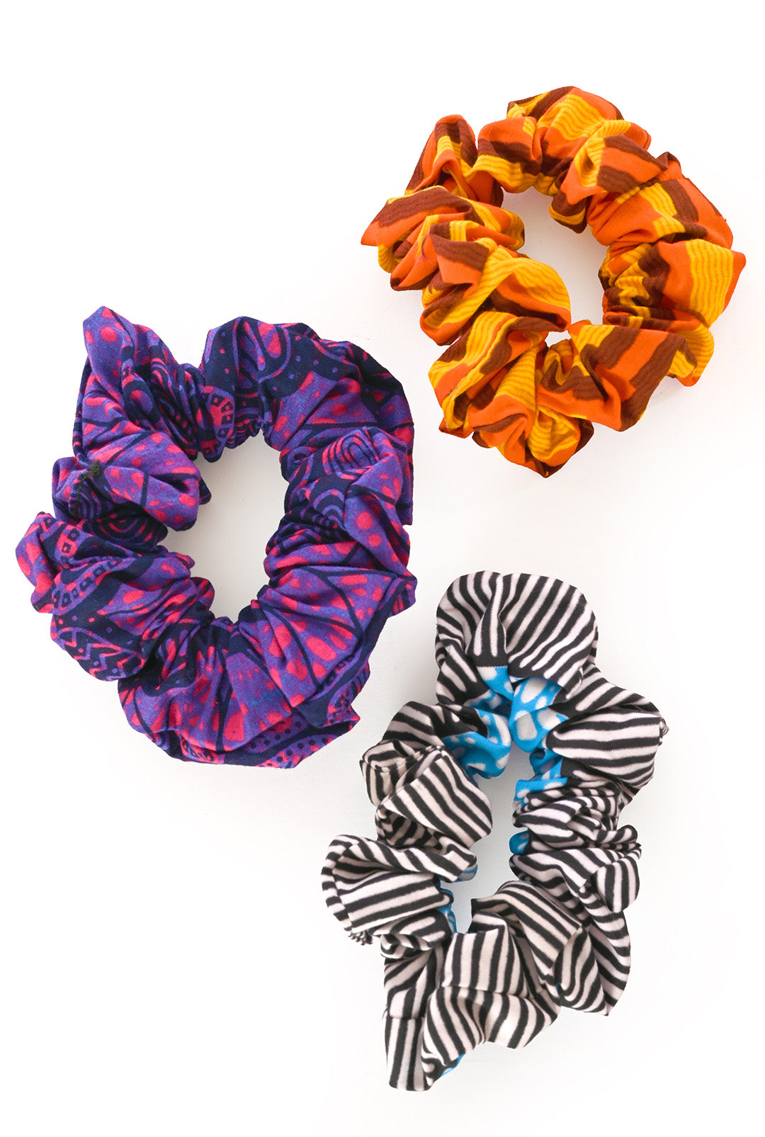 Ghanaian artisans craft these fun colorful hair ties from patterned cotton ankara cloth in assorted colors and designs.