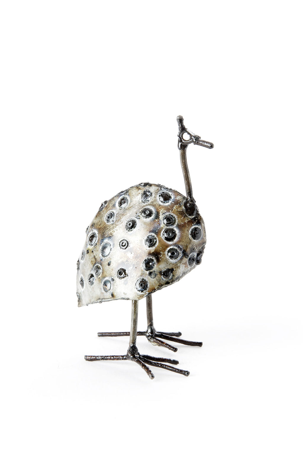 Small Recycled Metal Guinea Fowl Bird from Zimbabwe
