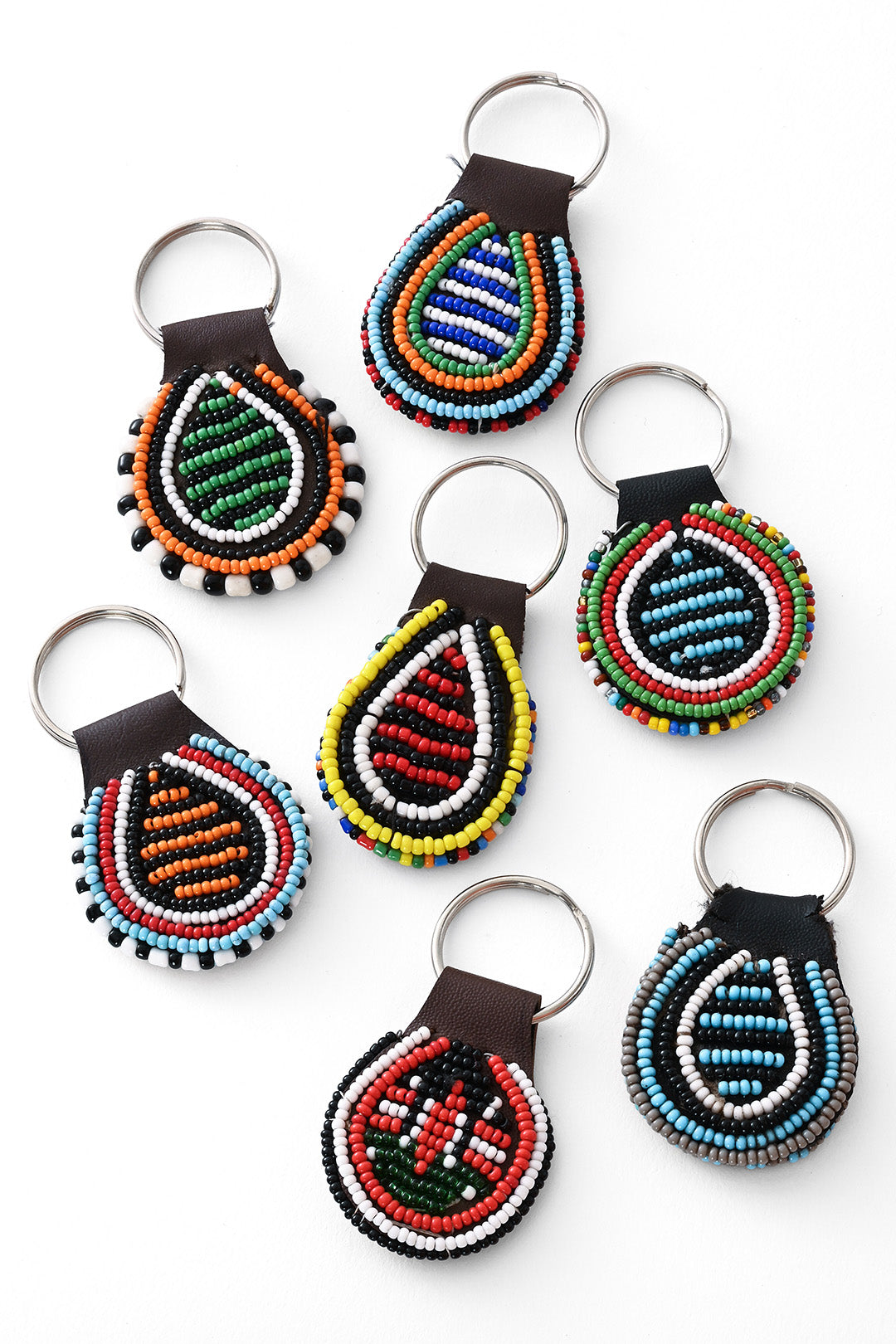 Kenyan artisans handcraft these colorful keychains from leather and beads. Each key ring is affixed with a sturdy split ring and features a unique color and pattern of beadwork.