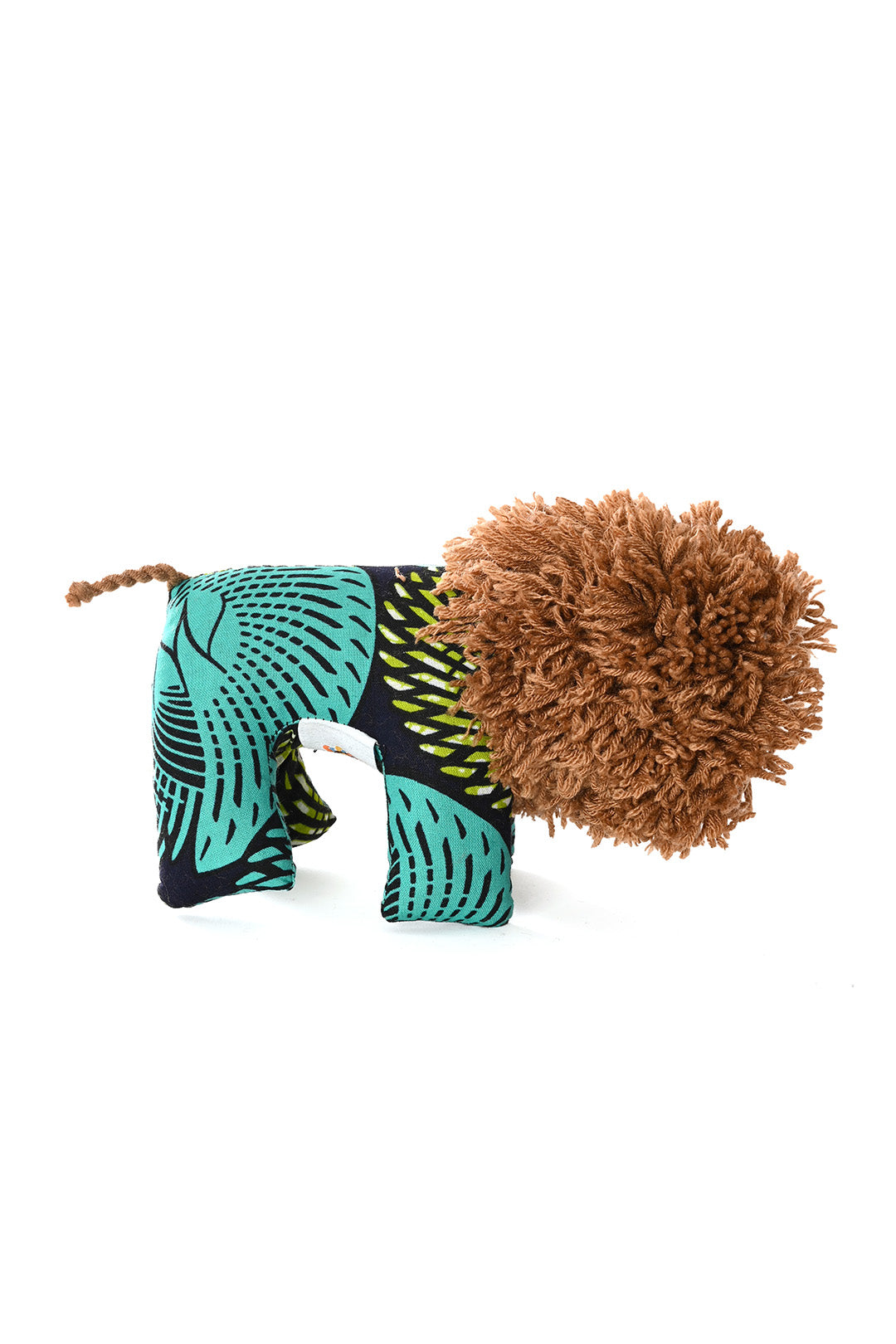 Artisans at Creation Hive in Kenya sew sweet stuffed lions from colorful assorted cuts of cotton fabric. Each lion is stuffed to plumpness with poly filling, and finished with a luxurious brown yarn mane and tail.