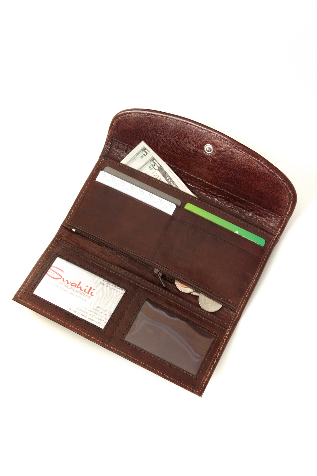 Our stylish Mod Mudcloth women's wallet includes organizational spaces for cards, cash and change. Each wallet is handcrafted from durable leather and mudcloth by a wonderful group of textile artisans in Bamako, Mali, who shine at incorporating contemporary mudcloth into their designs.