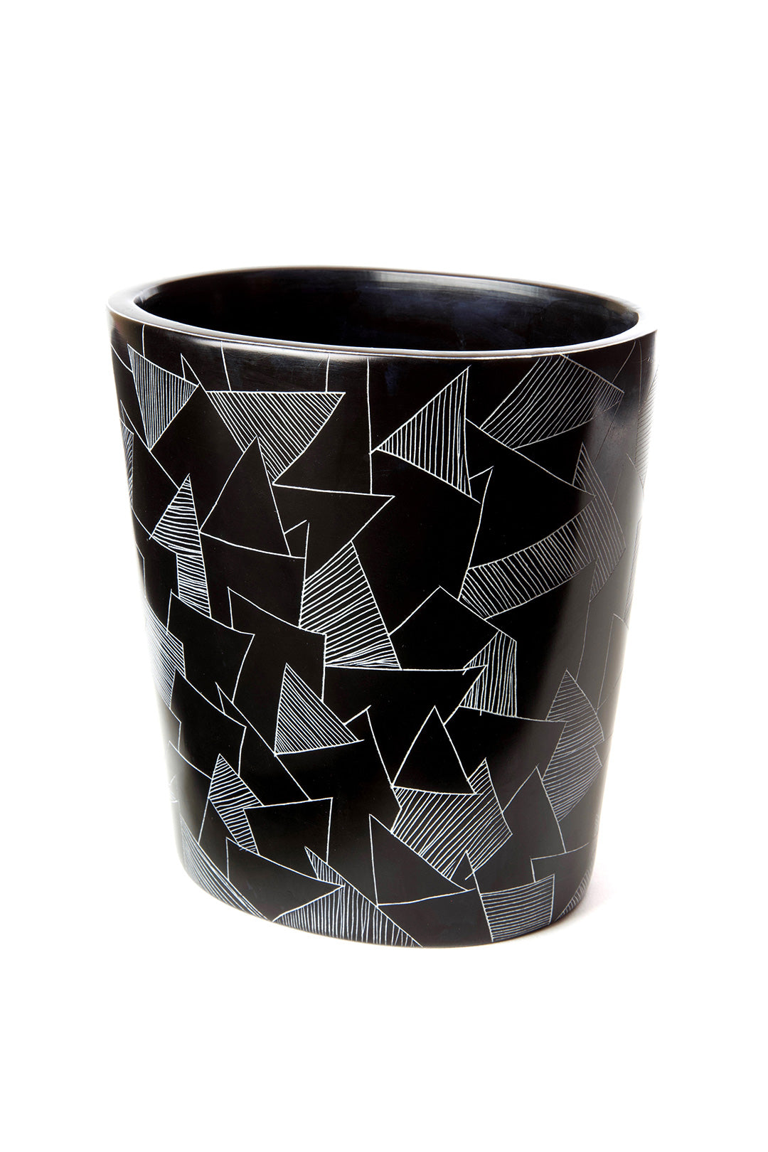 To create this beautiful vase, Kenyan artisans hand carve soft soapstone, then dye the exterior repeatedly to achieve a deep black finish. Etched details evoke the lustrous edges and shards of obsidian.