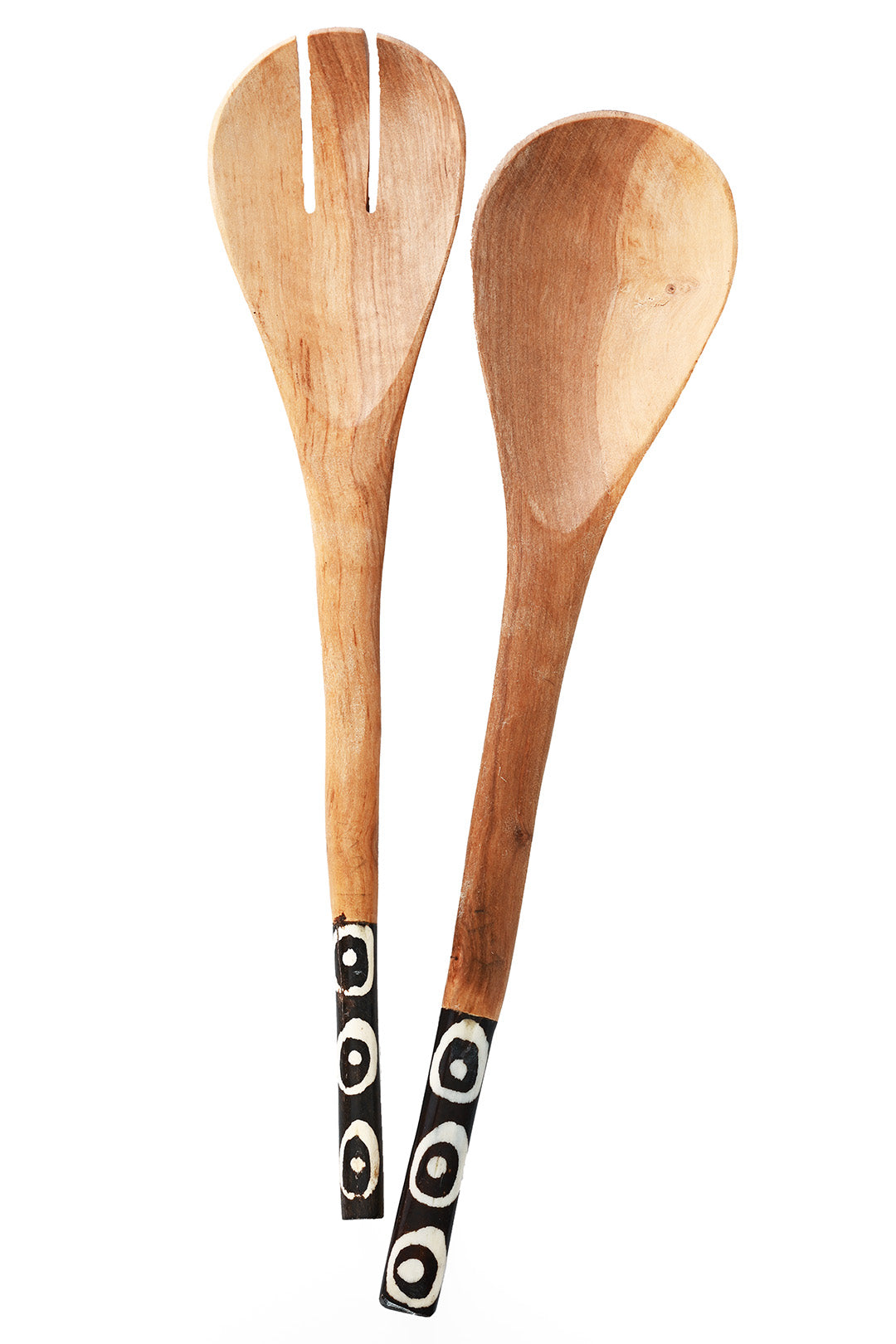 Kenyan Olive Wood Simple Salad Servers with Batik Bone Handles