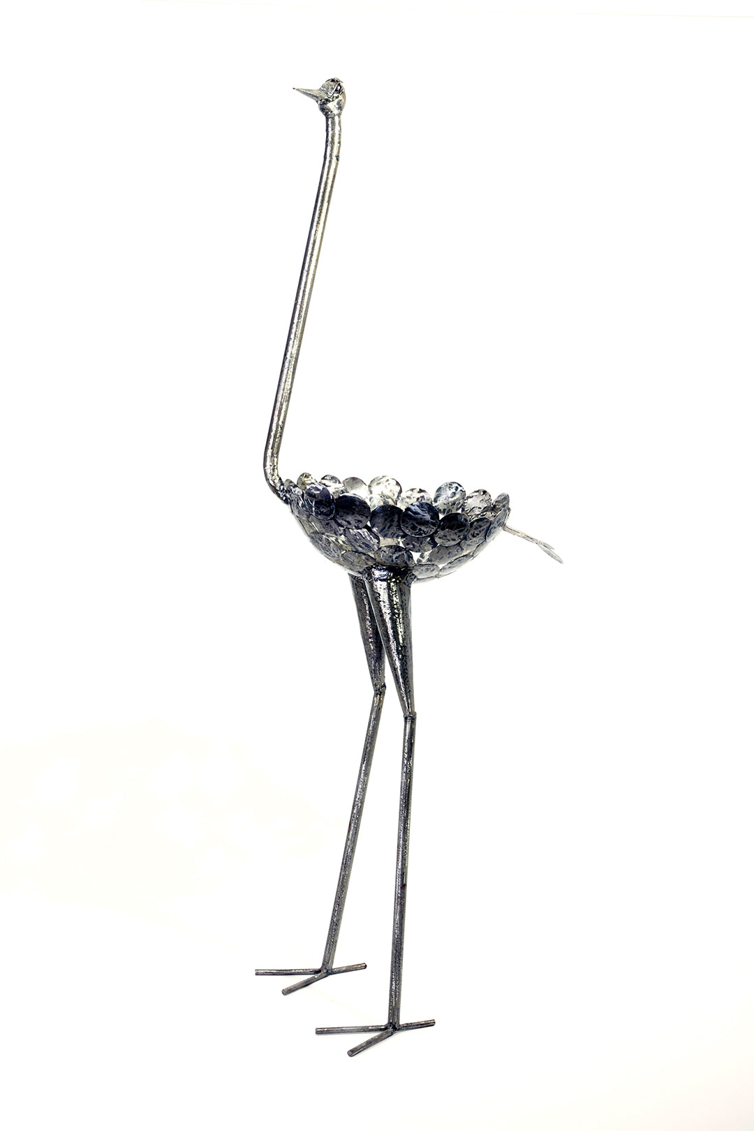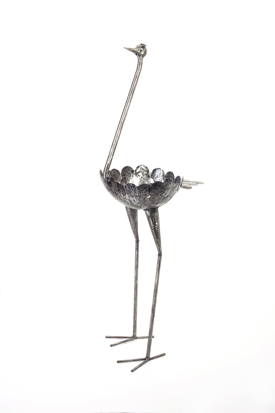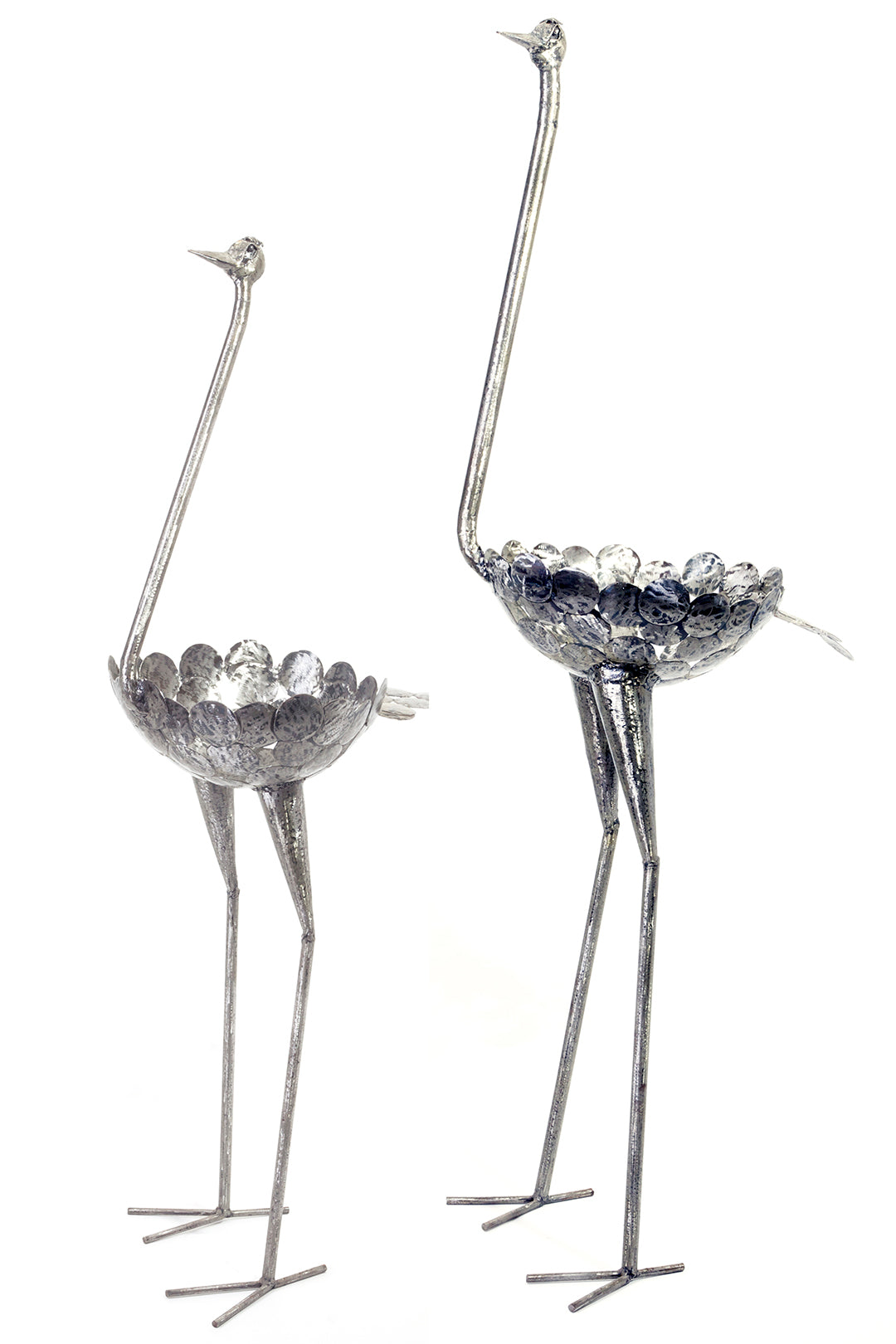 These creative ostrich plant holders are designed to showcase flowers artfully, as the contents of the round basket you include mimic an ostrich's plumes. Available in two sizes, each piece of garden art is handcrafted from the ground up and exhibits its own distinctive characteristics.
