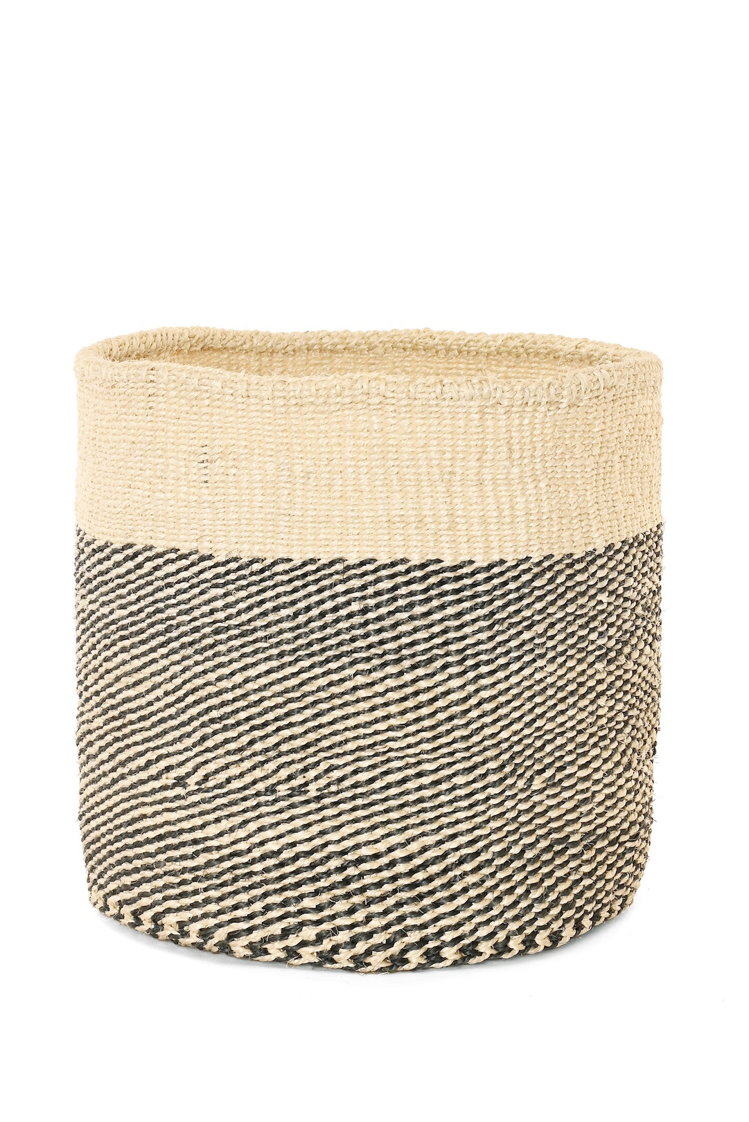 Large Charcoal Gray and Cream Twill Sisal Bin Basket