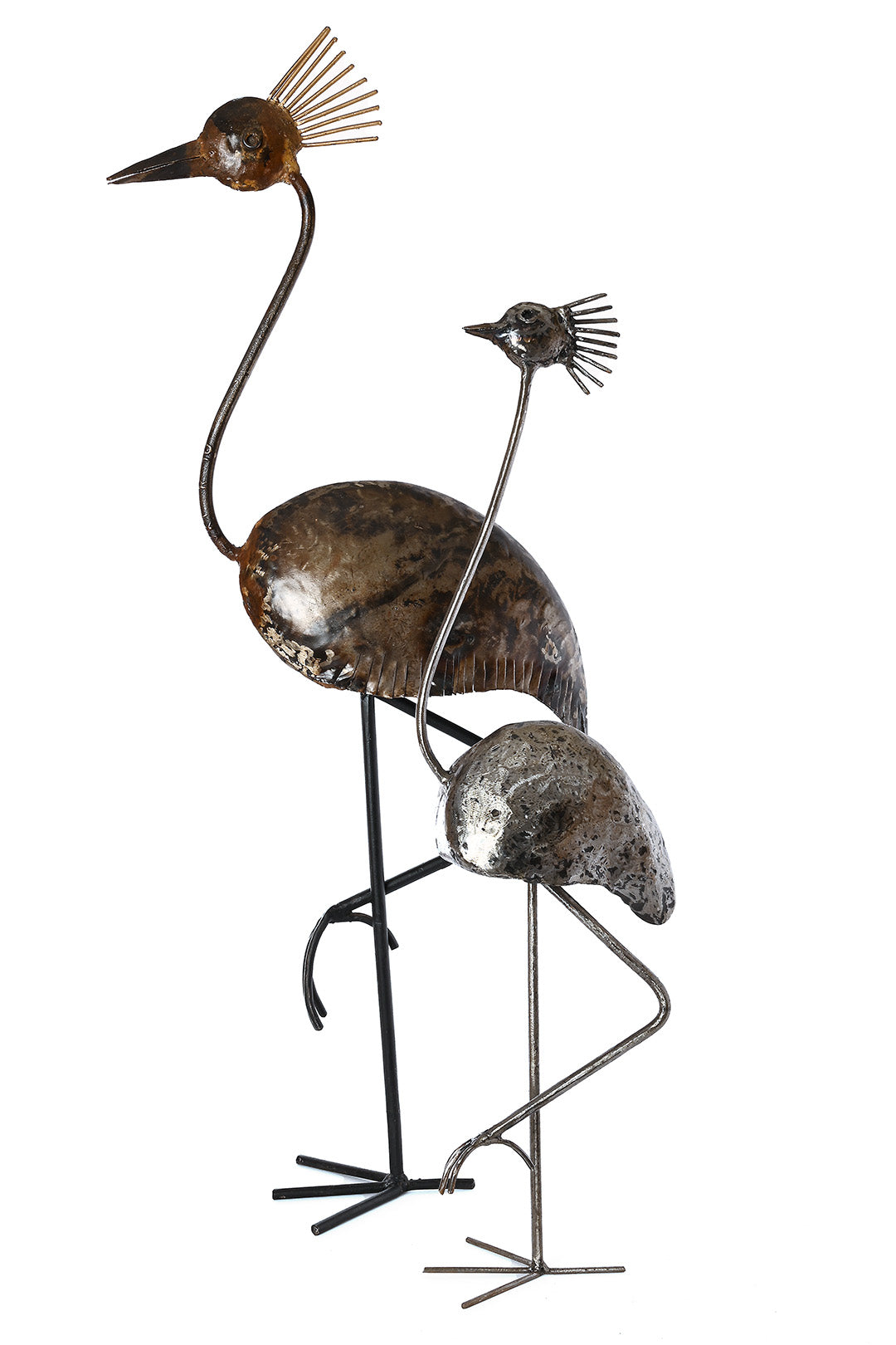 Talented welders and metal artisans craft these unique recycled metal cranes from salvaged metal pieces. Available in two sizes, these unique sculptures make a fun addition to the home or garden!