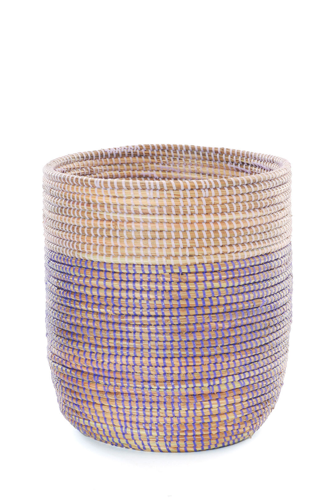 Wolof women in the West African nation of Senegal update traditional coil weaving methods by enlivening natural grass baskets with colorful strips of plastic salvaged from a mat factory. Cattails grow abundantly in rural Senegal, so women can earn a sustainable income from basket weaving, while enriching homes around the world with modern African craftsmanship.