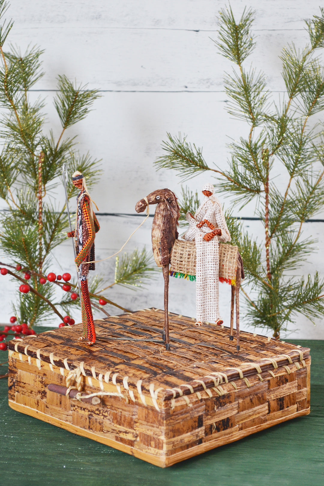 Leaving for Egypt Banana Fiber Nativity Sculpture with Box